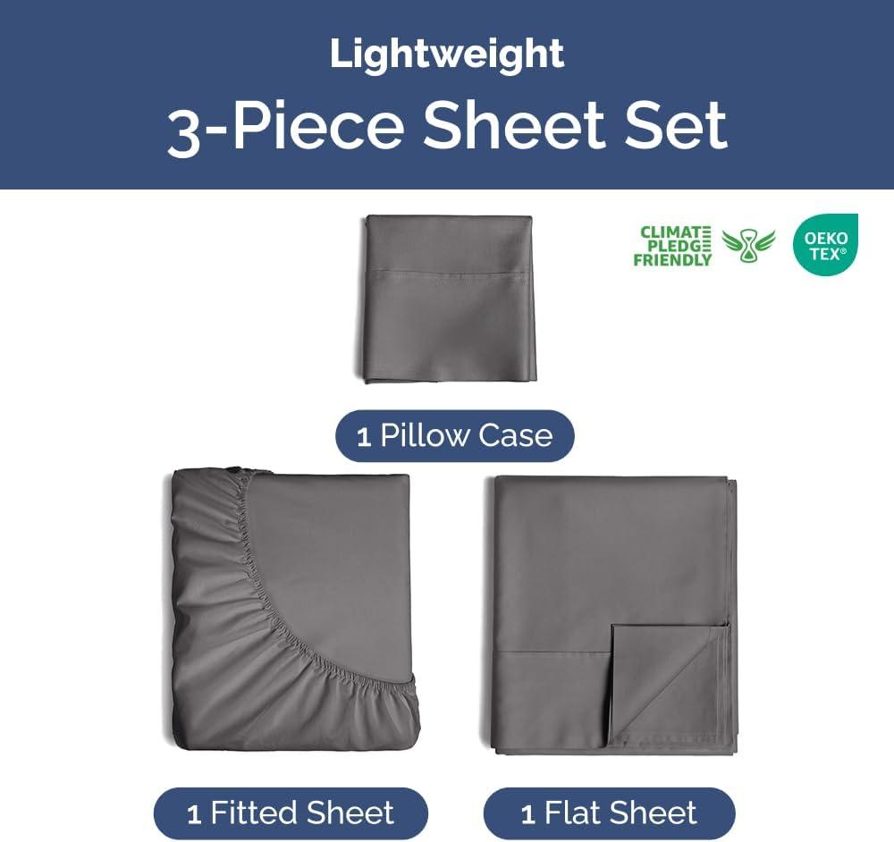 3 PIECE SHEET SET TWIN SIZE: Experience the ultimate in comfort with our lightweight, cooling and breathable sheet set. This bed set includes a flat sheet (96″ x 66″), a fitted sheet (75″ x 39”), and 1 pillowcase (20″ x 30″), all crafted for lasting durability and superior performance.