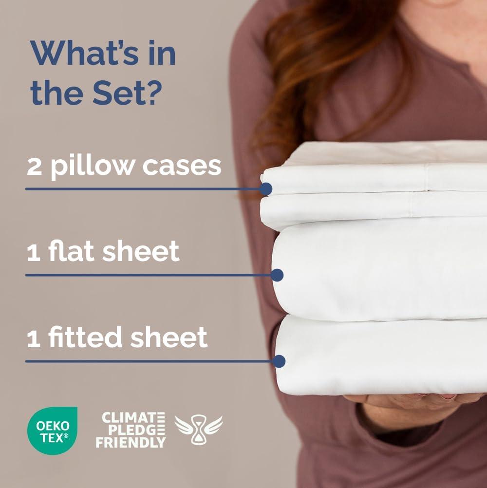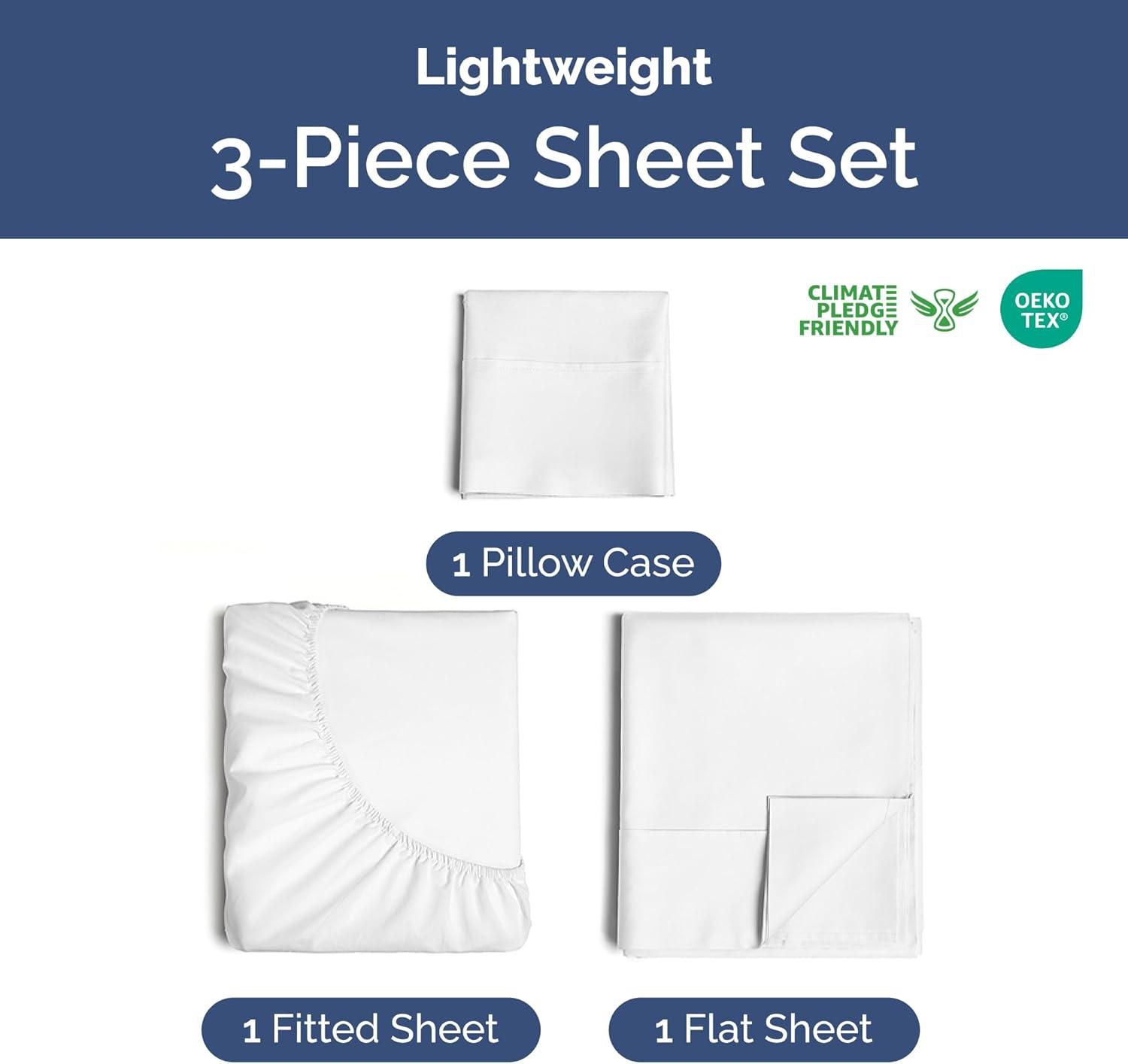 3 PIECE SHEET SET TWIN SIZE: Experience the ultimate in comfort with our lightweight, cooling and breathable sheet set. This bed set includes a flat sheet (96″ x 66″), a fitted sheet (75″ x 39”), and 1 pillowcase (20″ x 30″), all crafted for lasting durability and superior performance.