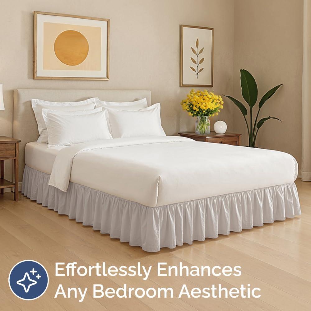 EFFORTLESS RUFFLED INSTALLATION: Simply lift your mattress and slide our platform-friendly, lay-flat ruffled bed skirt underneath—get a snug, seamless look in seconds with minimal effort.