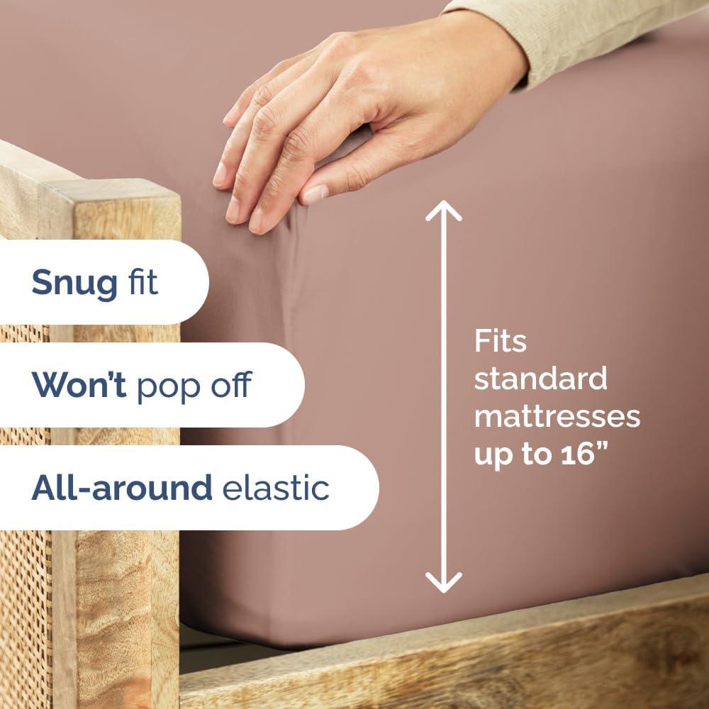 SNUG FIT THAT STAYS ON ALL NIGHT – Designed with deep pockets and 360° all-around elastic, this Cal King fitted sheet hugs mattresses up to 16” thick—even with toppers or pads. No more slipping corners or bunching up while you sleep.