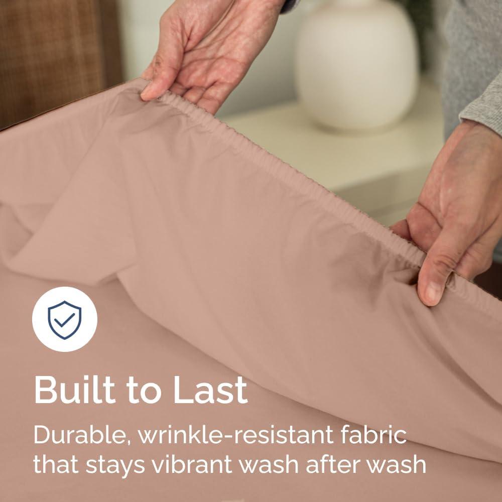 WRINKLE-FREE & EASY-CARE – Treated to resist wrinkles, fading, and shrinkage, this fitted sheet comes out of the dryer looking smooth and fresh. Enjoy effortless care and long-lasting clean style.