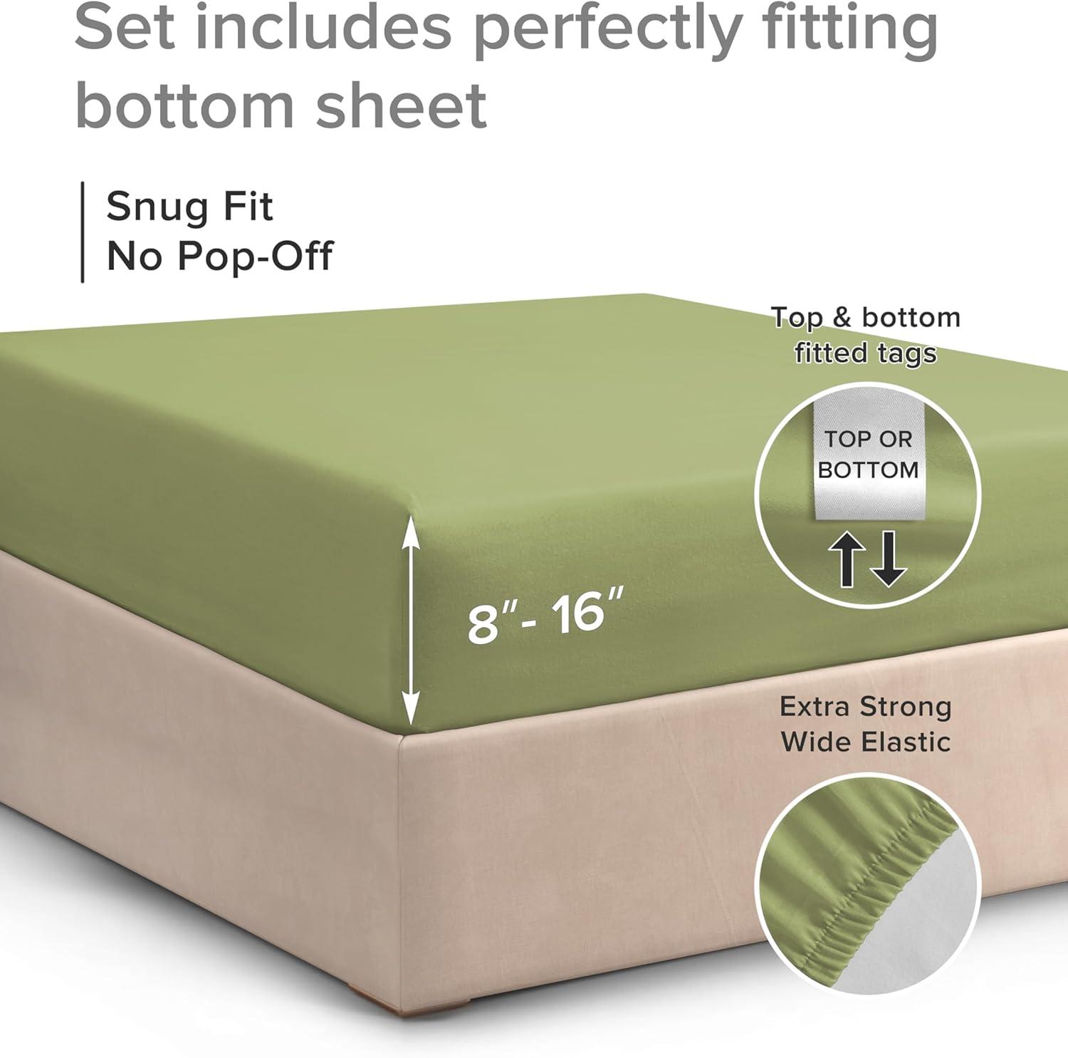 CGK Unlimited King Size Fitted Bed Sheet- Hotel Luxury- Fits Mattress Up to 16"- Soft, Wrinkle Free, Breathable Sheet for Women, Men, Kids & Teens- Light Olive Green(29 - Light Olive Green)