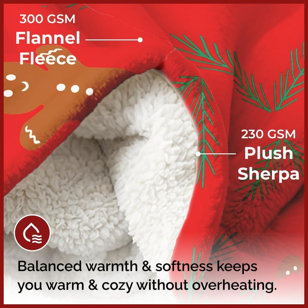 CHRISTMAS SHERPA THROW BLANKET: Indulge in the ultimate Sherpa Blanket Throw experience—featuring velvet-soft flannel on one side and plush Sherpa on the other for cloud-like comfort and warmth, perfect for the festive season.