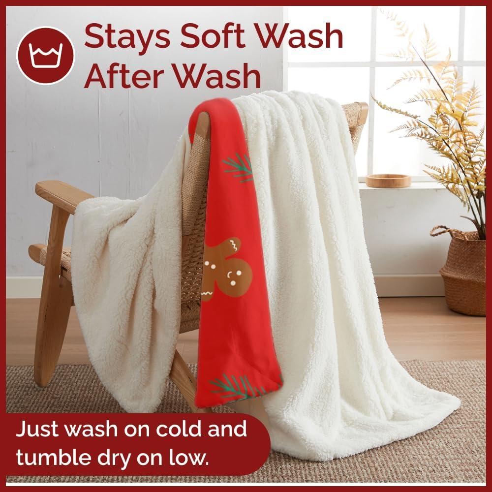 Christmas Sherpa Blanket Throw Size - Reversible Sherpa Fleece Blanket - Super Soft Double Sided Throw for Bed, Sofa, Couch - Thick, Warm, Cozy & Plush - Xmas Winter Bedding - Christmas Trees, 50x60(03- Gingerbread Man)