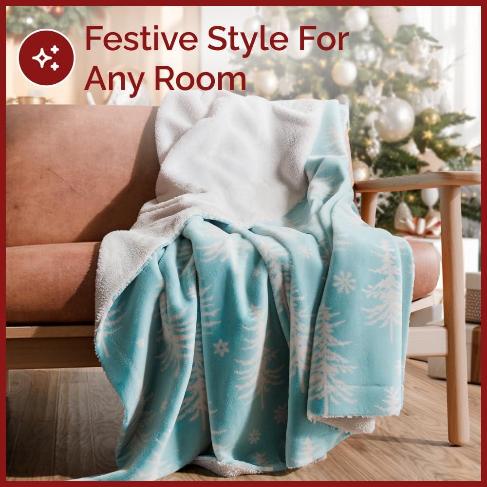 Christmas Sherpa Blanket Throw Size - Reversible Sherpa Fleece Blanket - Super Soft Double Sided Throw for Bed, Sofa, Couch - Thick, Warm, Cozy & Plush - Xmas Winter Bedding - Christmas Trees, 50x60(07 - Snowy Trees)