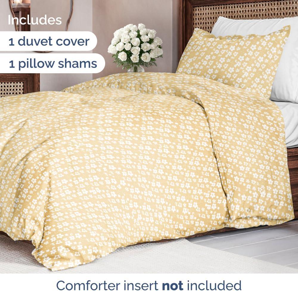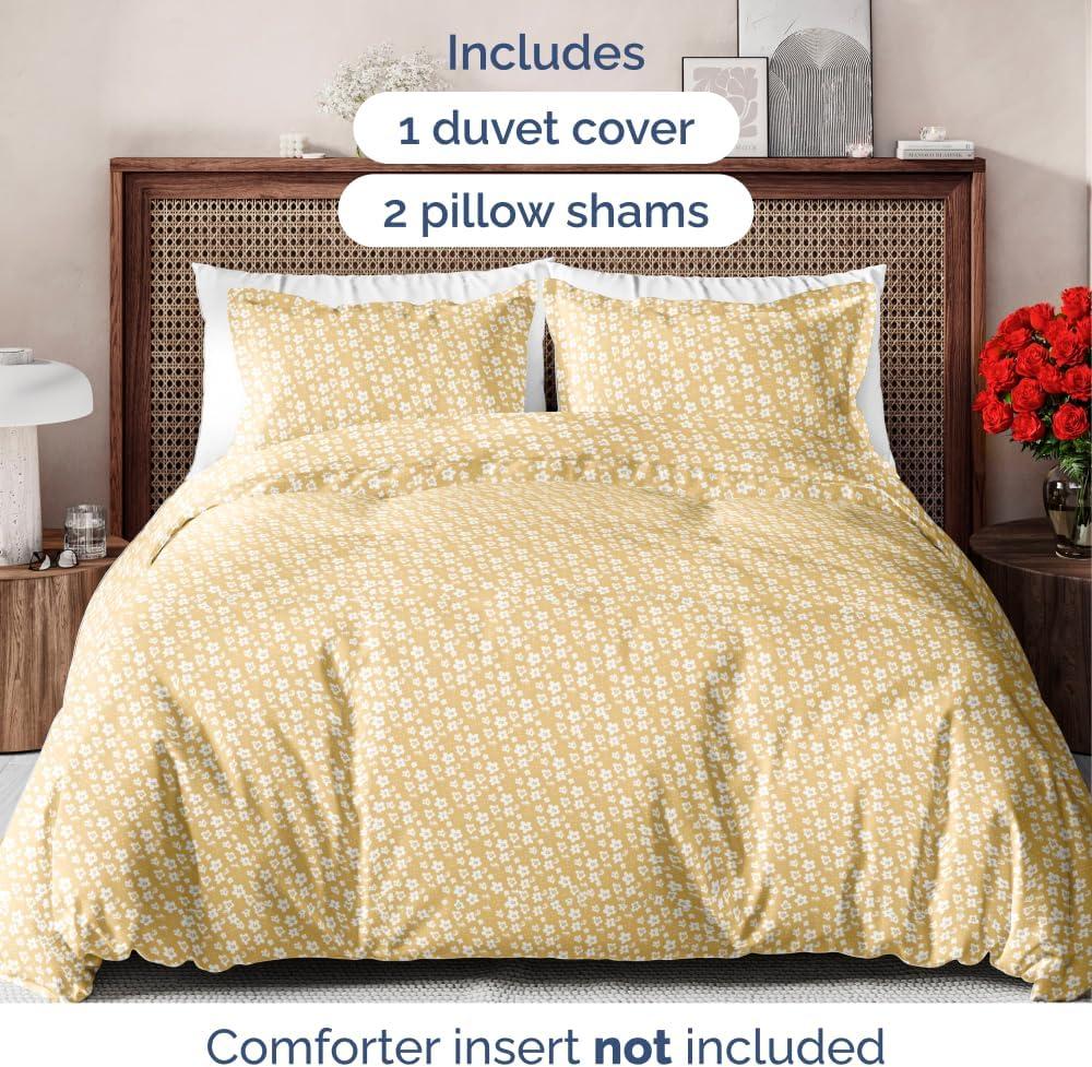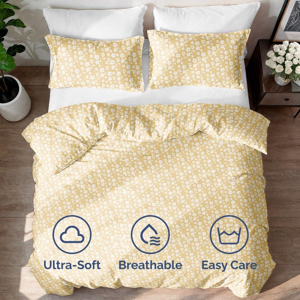 Duvet Cover Queen Size Set - Extra Soft Floral Duvet Cover 90 x 90 with 2 Pillow Shams - Comfy, Breathable Floral Bedding Set - Hotel Luxury Easy-Care & Fade Free with Zipper Closures & Ties - Plants(Yellow Meadow (No Comforter))