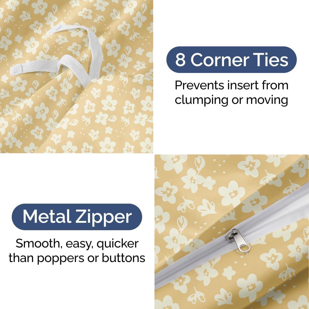 imageDuvet Cover Queen Size Set  Extra Soft Floral Duvet Cover 90 x 90 with 2 Pillow Shams  Comfy Breathable Floral Bedding Set  Hotel Luxury EasyCare ampamp Fade Free with Zipper Closures ampamp Ties  PlantsYellow Meadow No Comforter
