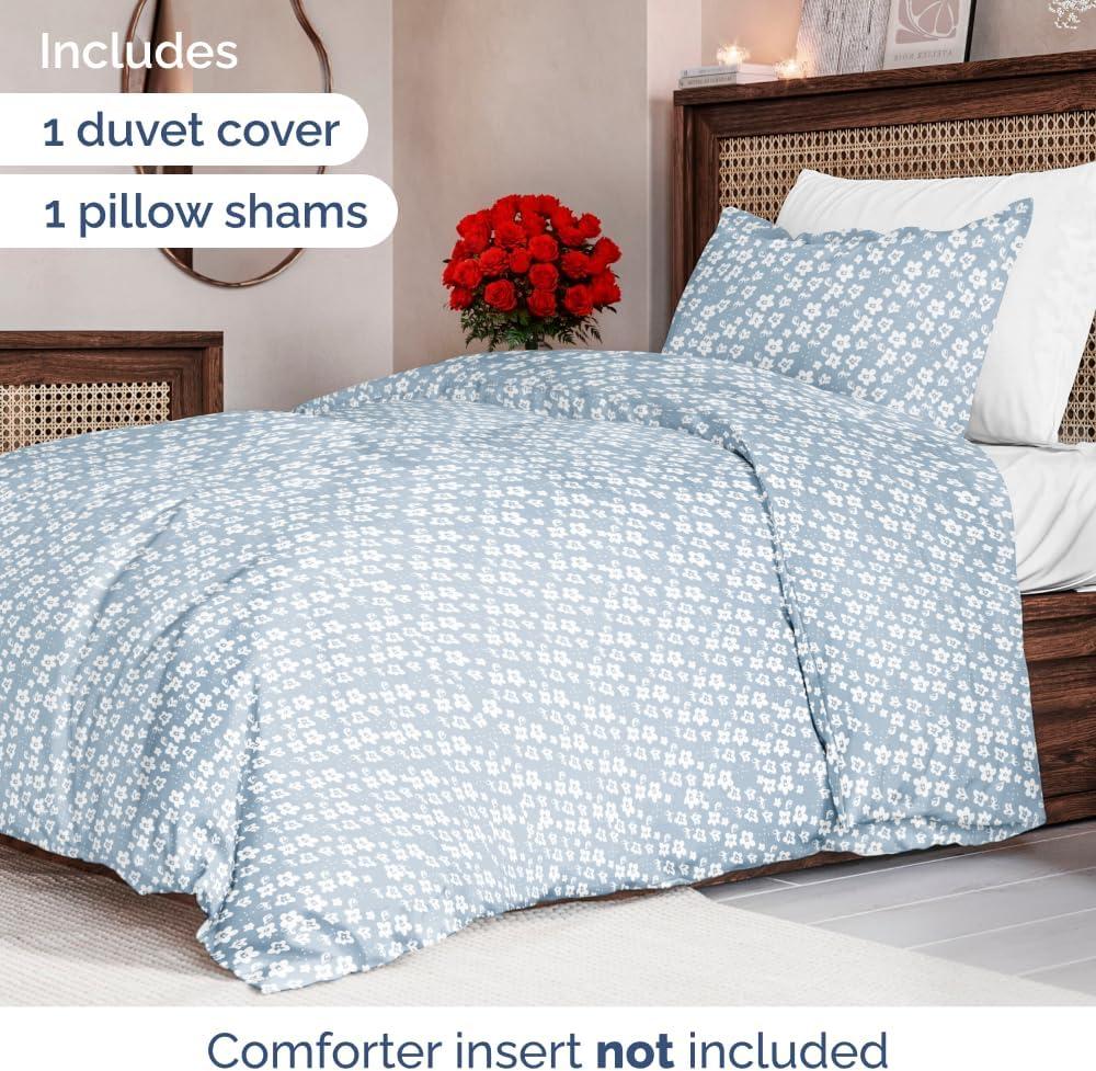 Transform your bedroom into a cozy retreat with our 3-Piece Floral Duvet Cover Bed Set, featuring an ultra-soft 90″ x 90″ Full duvet cover and two 20″ x 36″ pillow shams (comforter sold separately). Crafted from plush double-brushed fabric, this luxurious yet affordable set delivers exceptional softness, smoothness, and lasting comfort for the perfect night’s sleep. Designed to stay vibrant wash after wash, the fade-free material maintains its fresh, beautiful look while remaining ultra-durable. With convenient zipper closure and 8 interior ties, your duvet stays perfectly in place for easy, hassle-free care. Lightweight and breathable, this OEKO-TEX certified set ensures a cool, comfortable sleep experience year-round—so you can rest easy knowing your bedding is as gentle on the planet as it is on your skin.