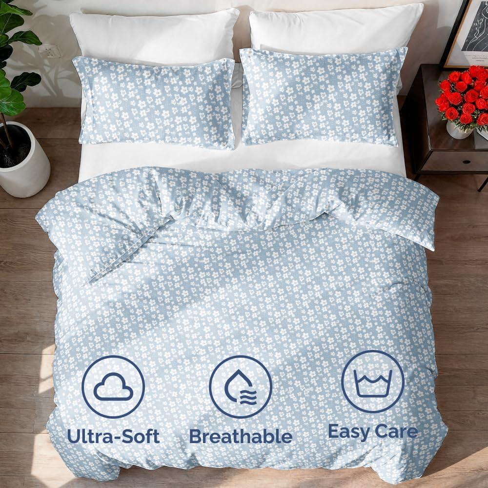 imageDuvet Cover Queen Size Set  Extra Soft Floral Duvet Cover 90 x 90 with 2 Pillow Shams  Comfy Breathable Floral Bedding Set  Hotel Luxury EasyCare ampamp Fade Free with Zipper Closures ampamp Ties  PlantsBlue Meadow No Comforter
