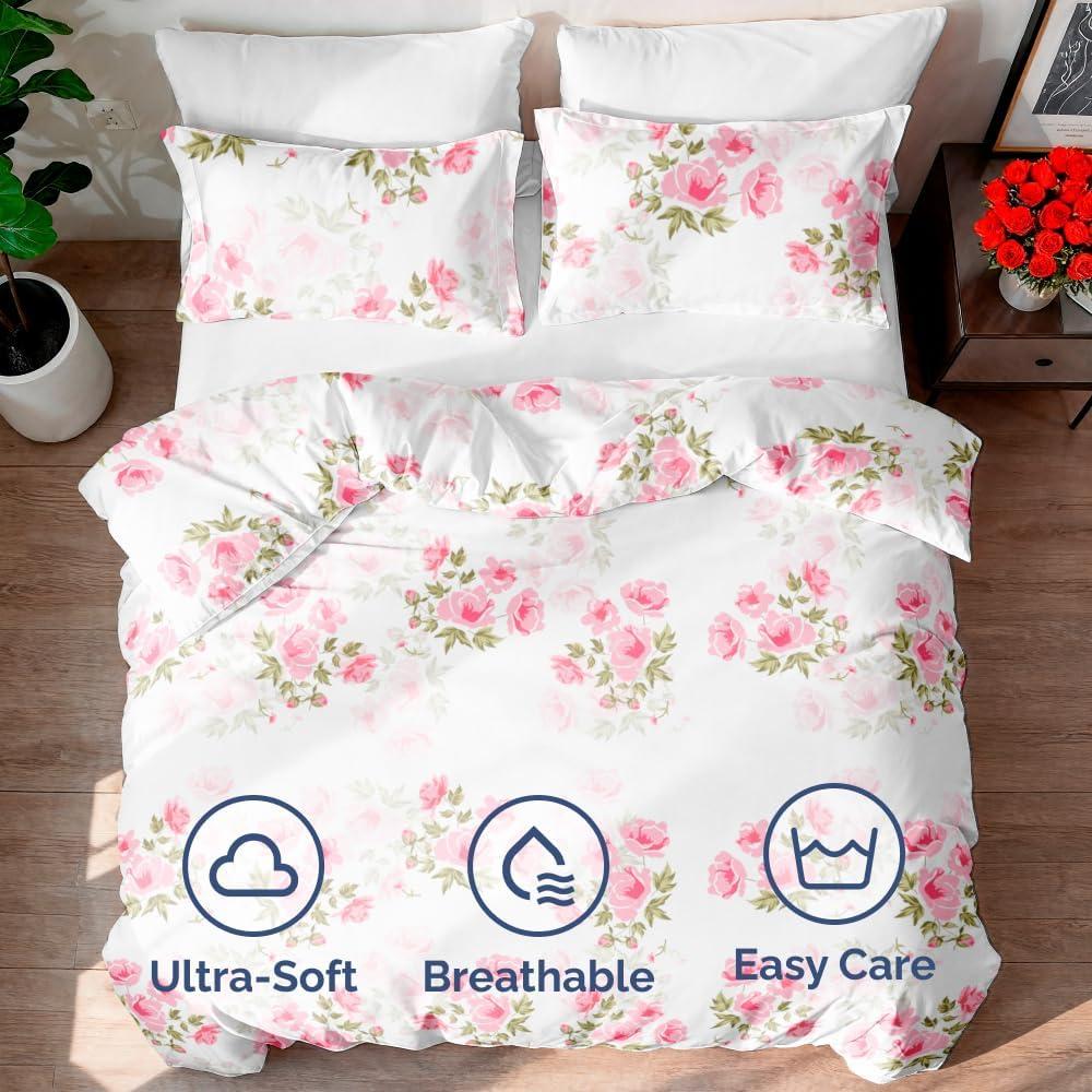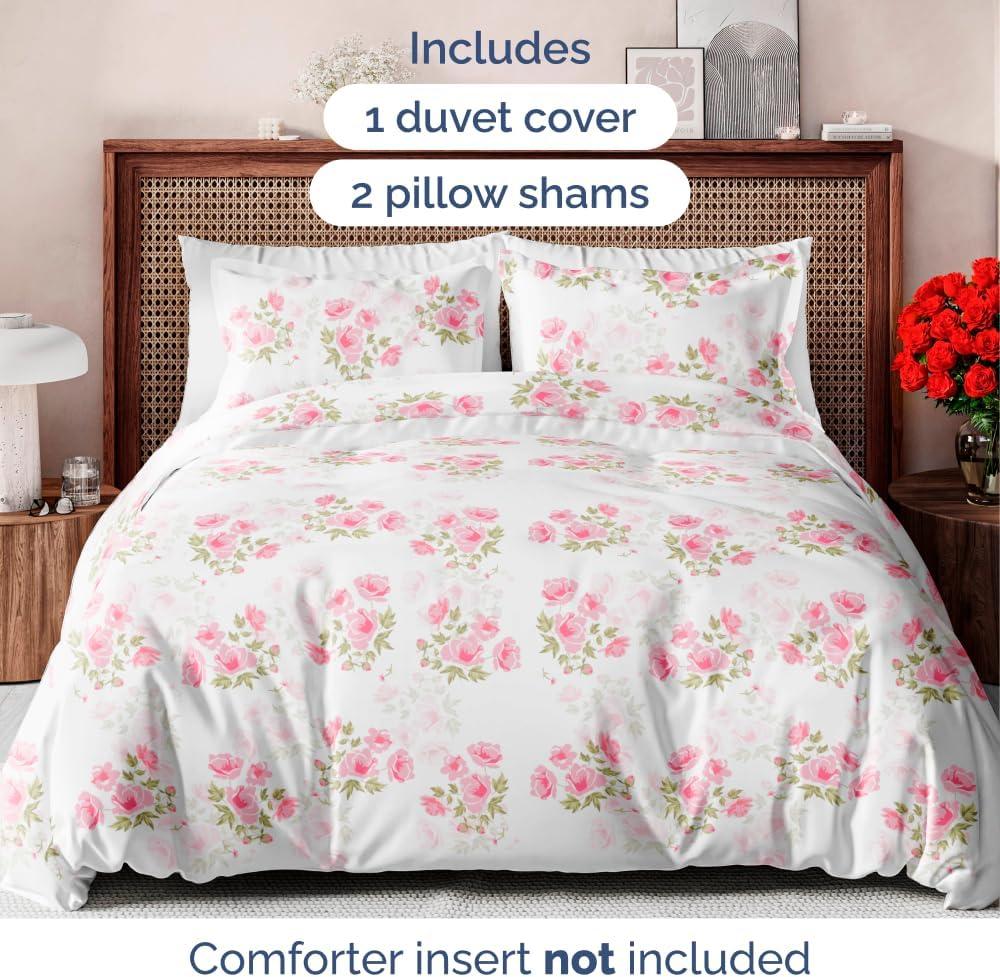 3 PIECE FLORAL DUVET COVER BED SET: Transform your bedroom with our ultra soft 90″ x 90″ Queen size duvet cover set complete w/ (2) 20″ x 36″ pillow shams. Designed for ultimate comfort, this stylish Floral duvet cover set is luxurious, comfy, and oh-so-cozy – indulge in the ultimate sleep experience with our Queen size duvet cover set. Comforter NOT Included (Sold Separately).