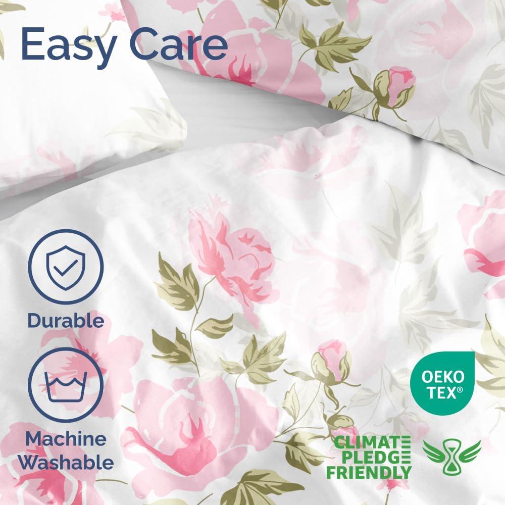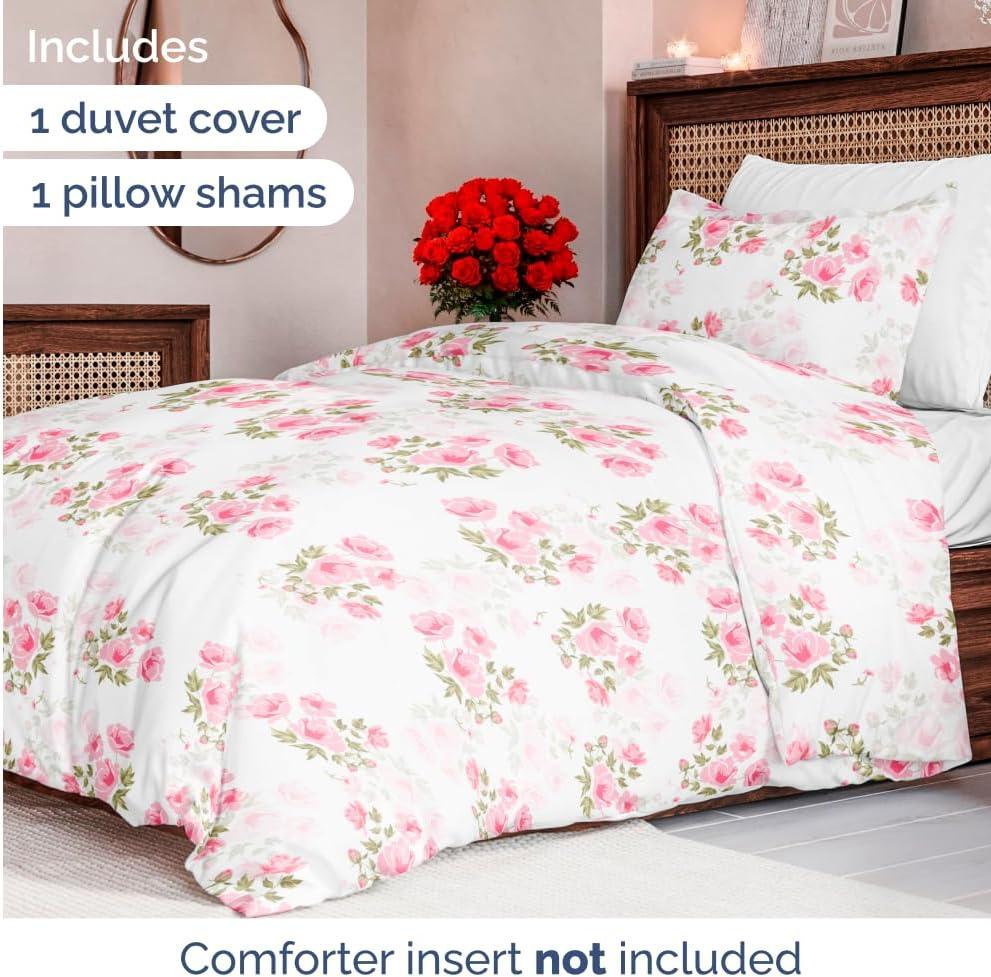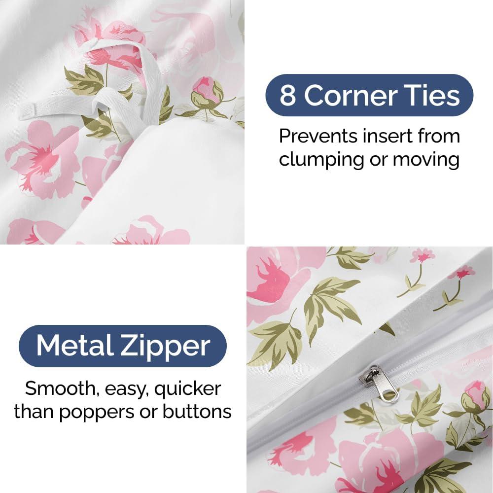 Transform your bedroom into a cozy retreat with our 3-Piece Floral Duvet Cover Bed Set, featuring an ultra-soft 90″ x 90″ Full duvet cover and two 20″ x 36″ pillow shams (comforter sold separately). Crafted from plush double-brushed fabric, this luxurious yet affordable set delivers exceptional softness, smoothness, and lasting comfort for the perfect night’s sleep. Designed to stay vibrant wash after wash, the fade-free material maintains its fresh, beautiful look while remaining ultra-durable. With convenient zipper closure and 8 interior ties, your duvet stays perfectly in place for easy, hassle-free care. Lightweight and breathable, this OEKO-TEX certified set ensures a cool, comfortable sleep experience year-round—so you can rest easy knowing your bedding is as gentle on the planet as it is on your skin.