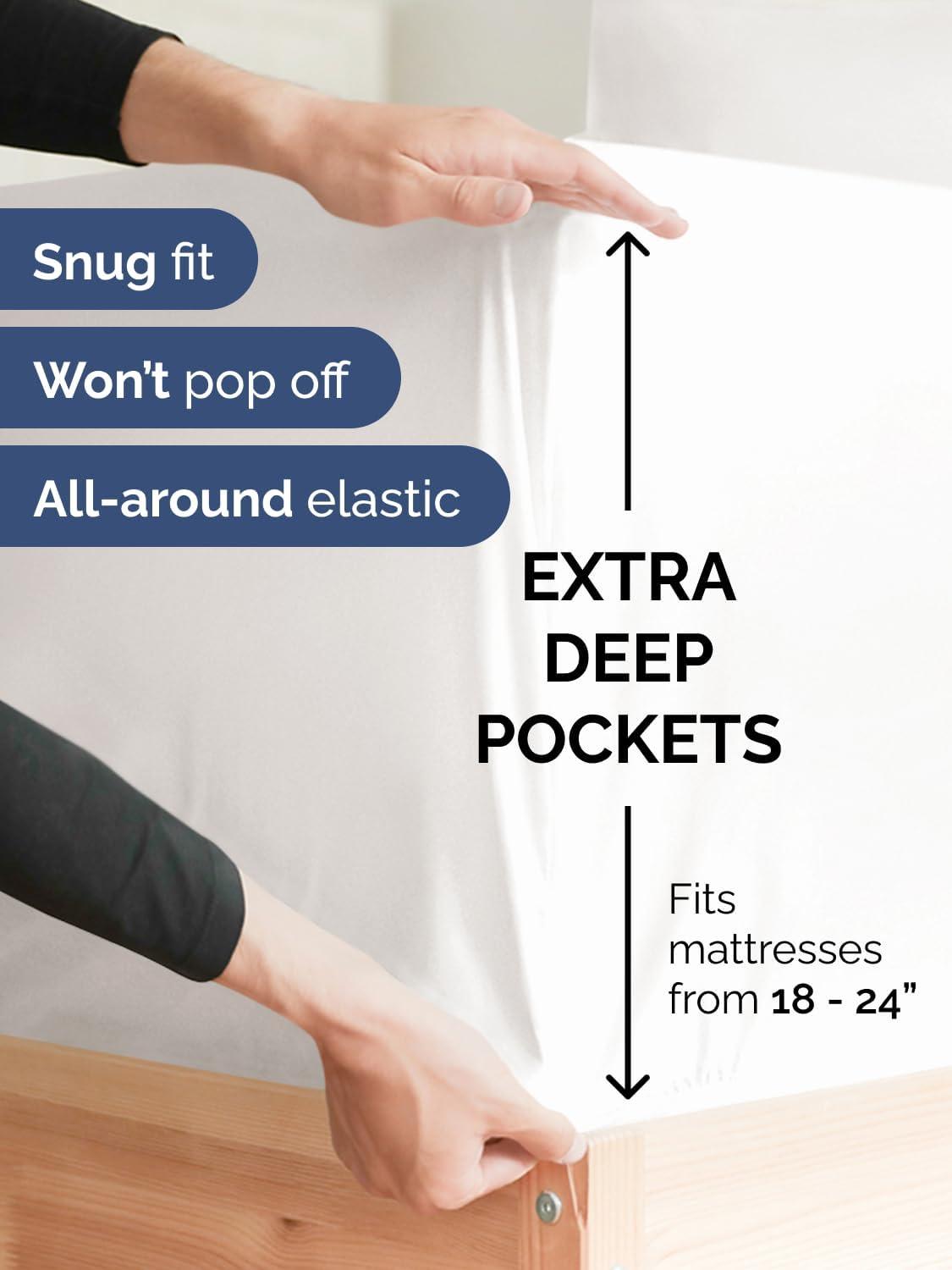 imageExtra Deep Split King Fitted Sheet  Hotel Luxury Single Fitted Sheet Only  Easily Fits 18 inch to 24 inch Mattress  Ultra Soft Wrinkle Free wExtra Deep Pockets  Breathable ampamp Comfy  Light Grey01  White
