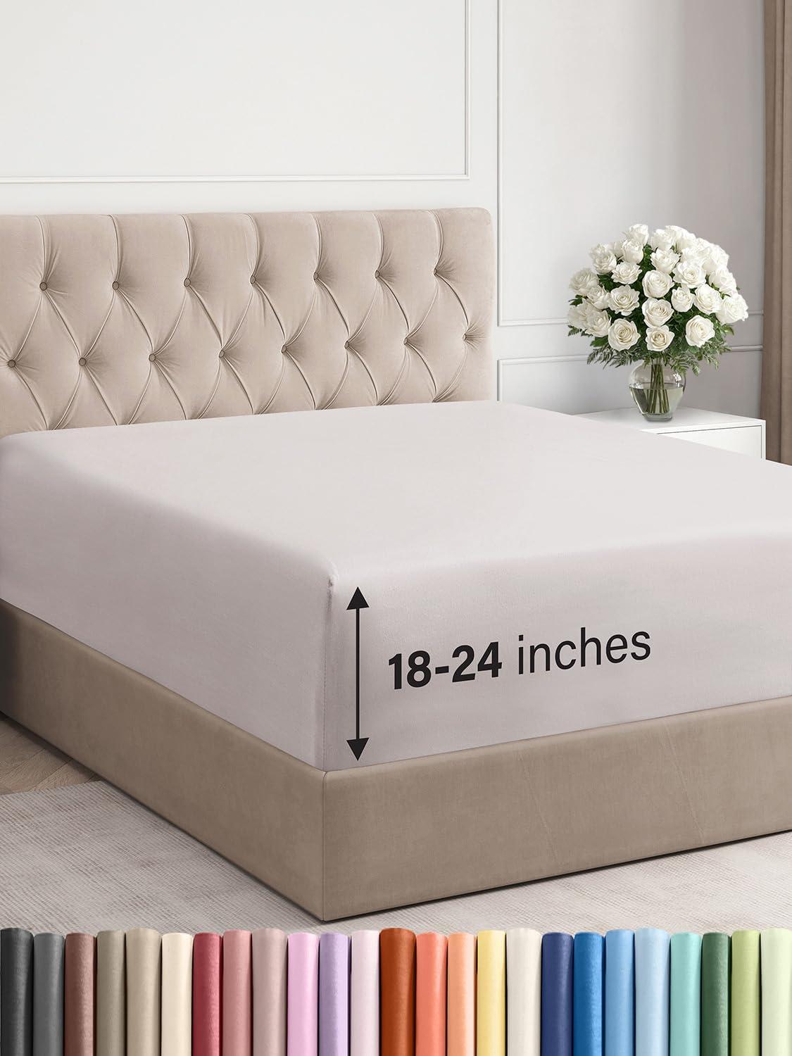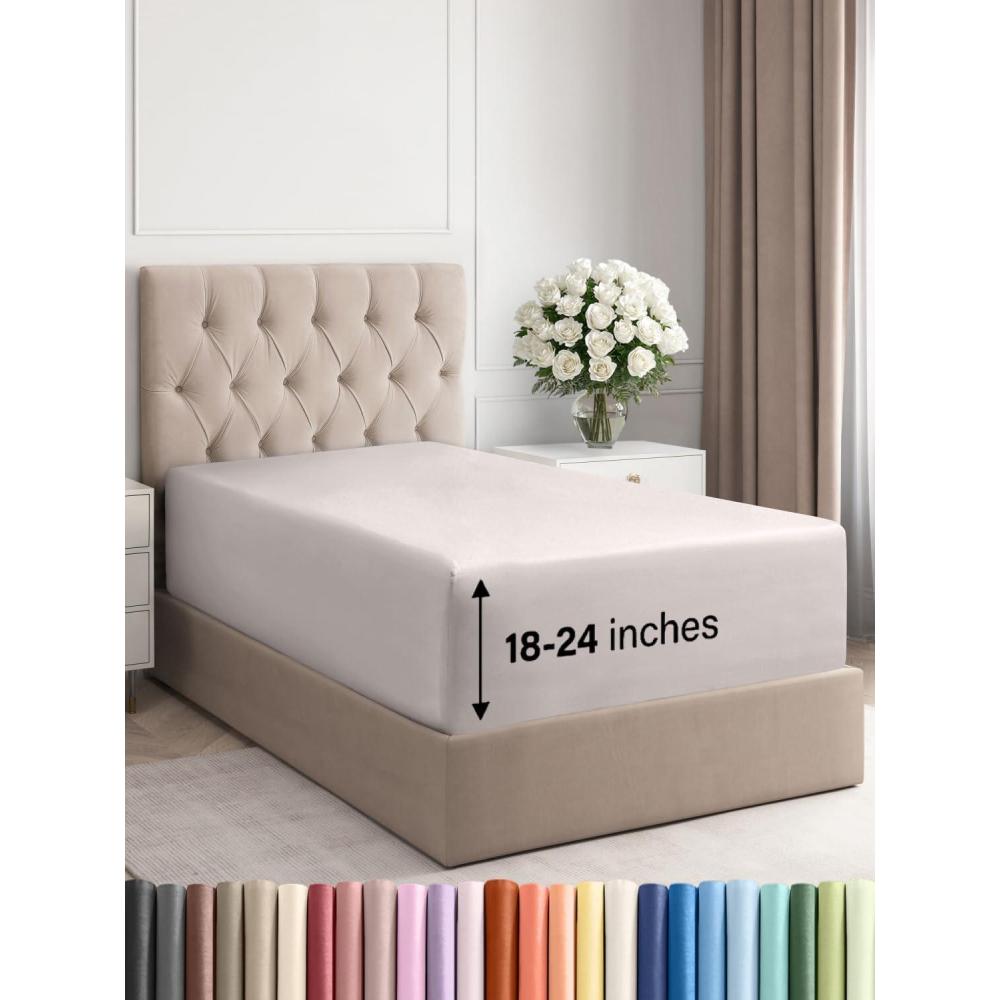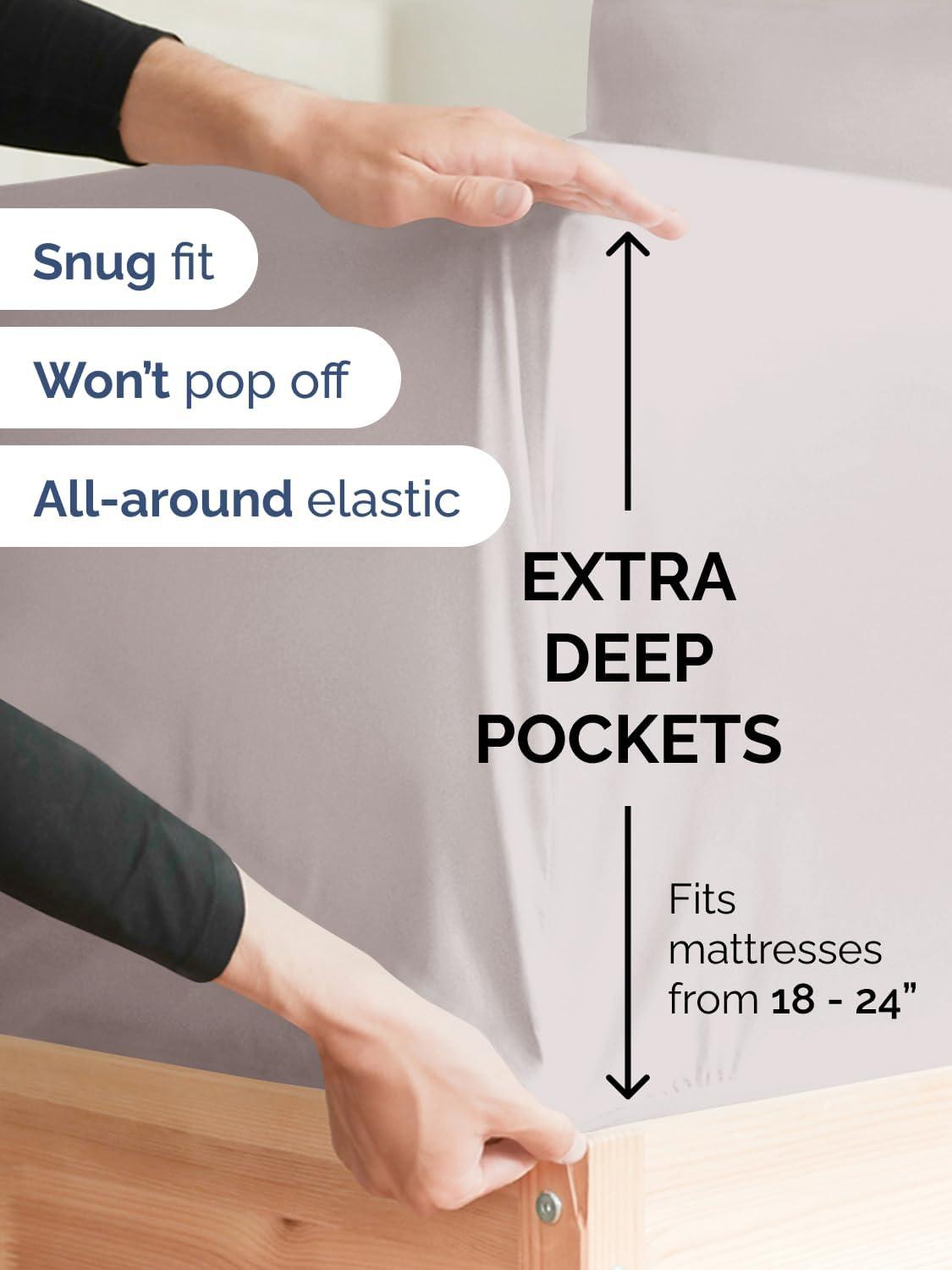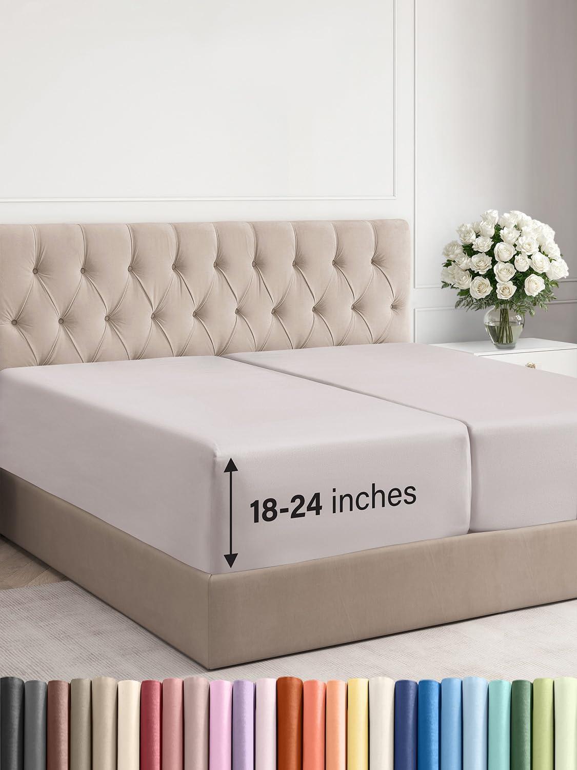 imageExtra Deep Split King Fitted Sheet  Hotel Luxury Single Fitted Sheet Only  Easily Fits 18 inch to 24 inch Mattress  Ultra Soft Wrinkle Free wExtra Deep Pockets  Breathable ampamp Comfy  Light Grey04  Light Grey