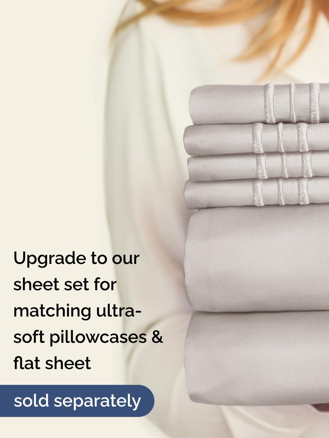 imageExtra Deep Split King Fitted Sheet  Hotel Luxury Single Fitted Sheet Only  Easily Fits 18 inch to 24 inch Mattress  Ultra Soft Wrinkle Free wExtra Deep Pockets  Breathable ampamp Comfy  Light Grey03  French Grey