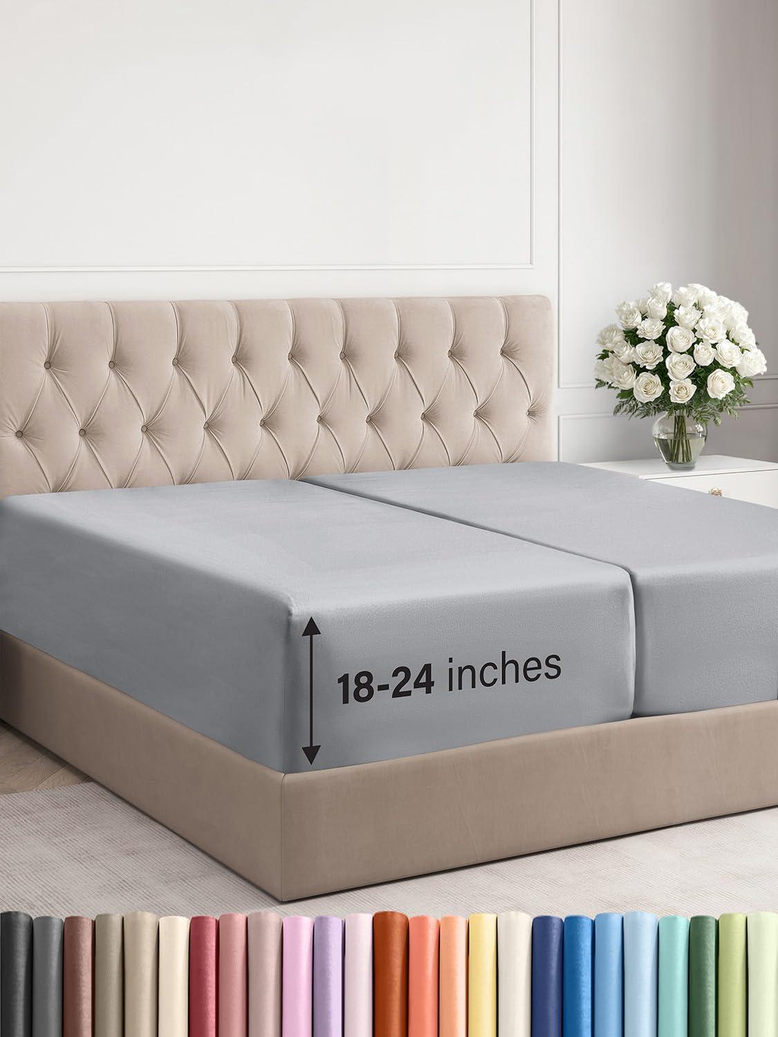 imageExtra Deep Split King Fitted Sheet  Hotel Luxury Single Fitted Sheet Only  Easily Fits 18 inch to 24 inch Mattress  Ultra Soft Wrinkle Free wExtra Deep Pockets  Breathable ampamp Comfy  Light Grey04  Light Grey