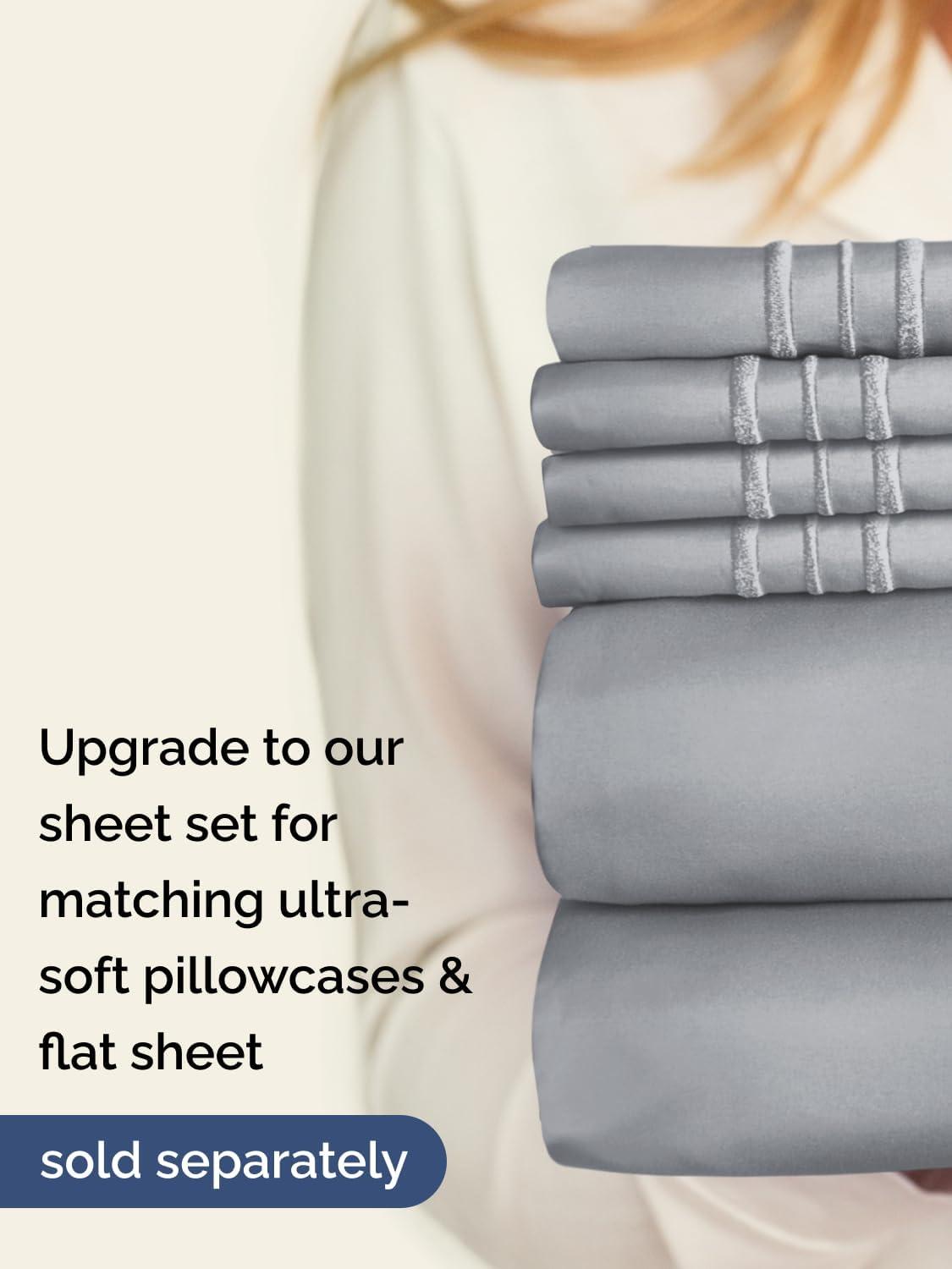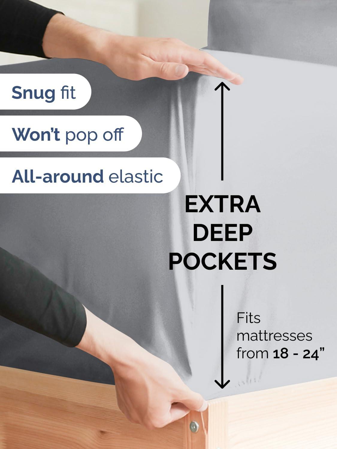 imageExtra Deep Split King Fitted Sheet  Hotel Luxury Single Fitted Sheet Only  Easily Fits 18 inch to 24 inch Mattress  Ultra Soft Wrinkle Free wExtra Deep Pockets  Breathable ampamp Comfy  Light Grey06  Heathered Grey