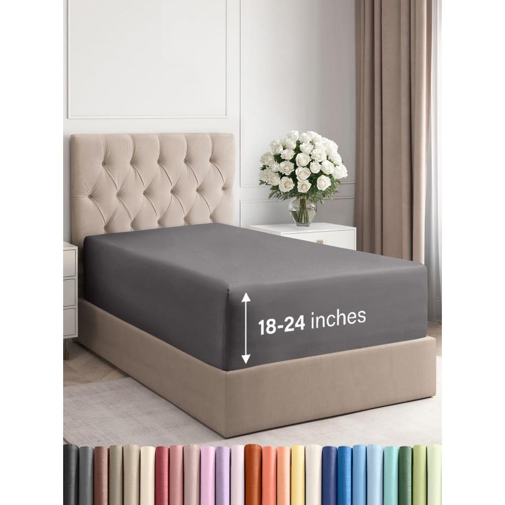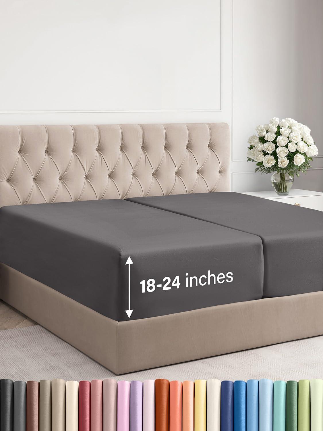 imageExtra Deep Split King Fitted Sheet  Hotel Luxury Single Fitted Sheet Only  Easily Fits 18 inch to 24 inch Mattress  Ultra Soft Wrinkle Free wExtra Deep Pockets  Breathable ampamp Comfy  Light Grey07  Dark Grey