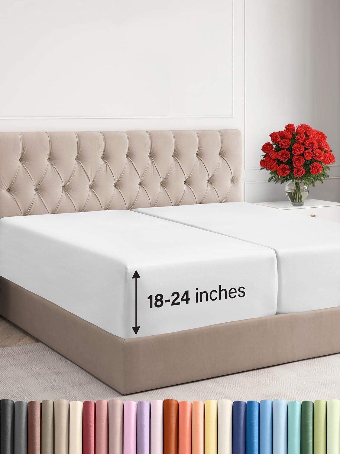 imageExtra Deep Split King Fitted Sheet  Hotel Luxury Single Fitted Sheet Only  Easily Fits 18 inch to 24 inch Mattress  Ultra Soft Wrinkle Free wExtra Deep Pockets  Breathable ampamp Comfy  Light Grey01  White