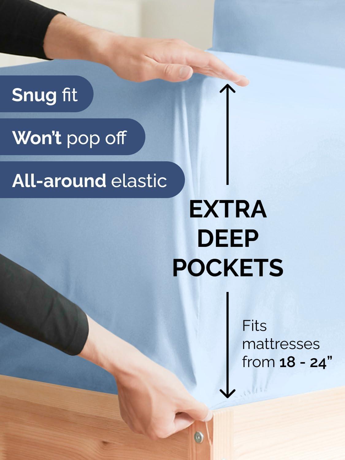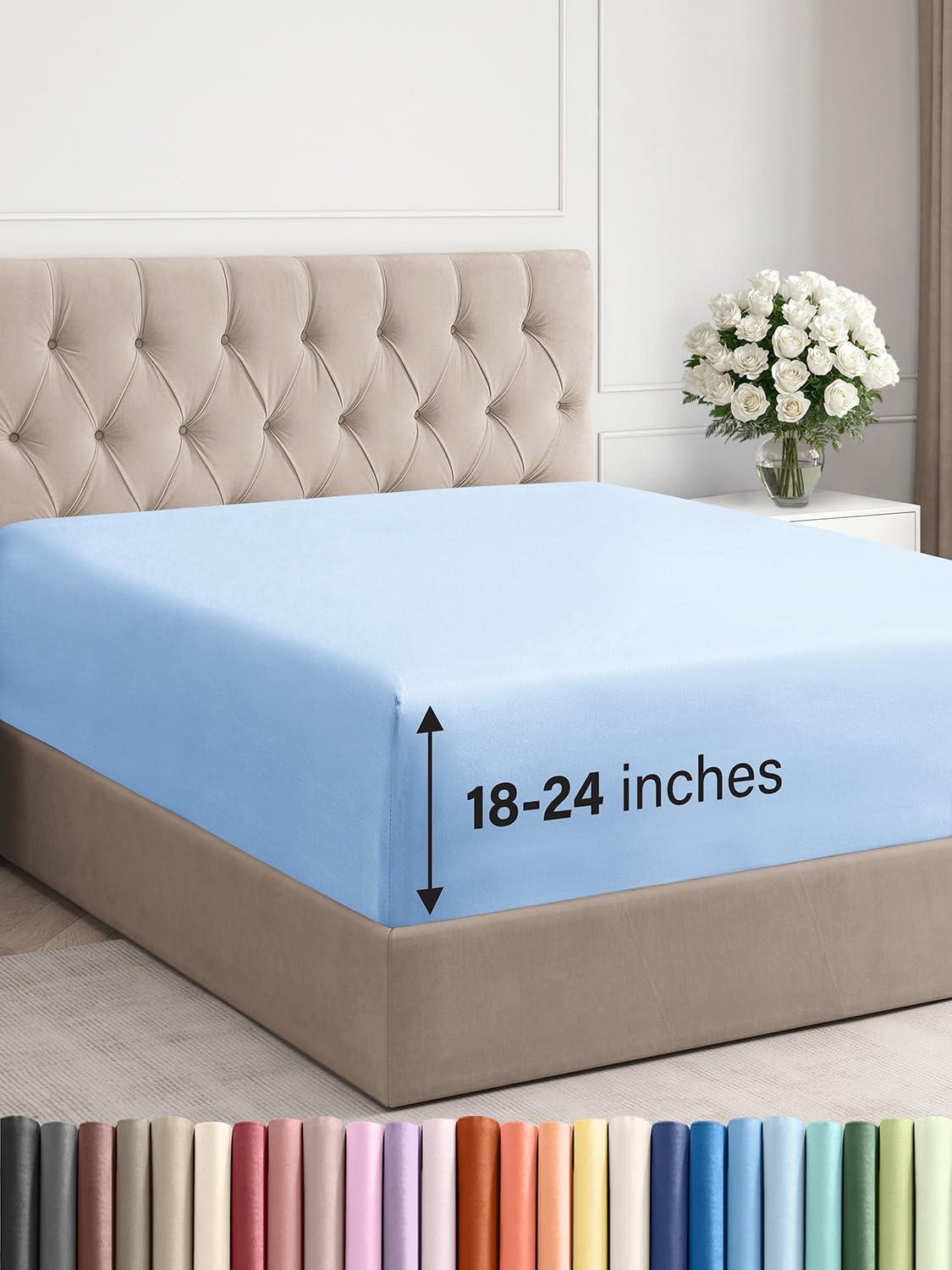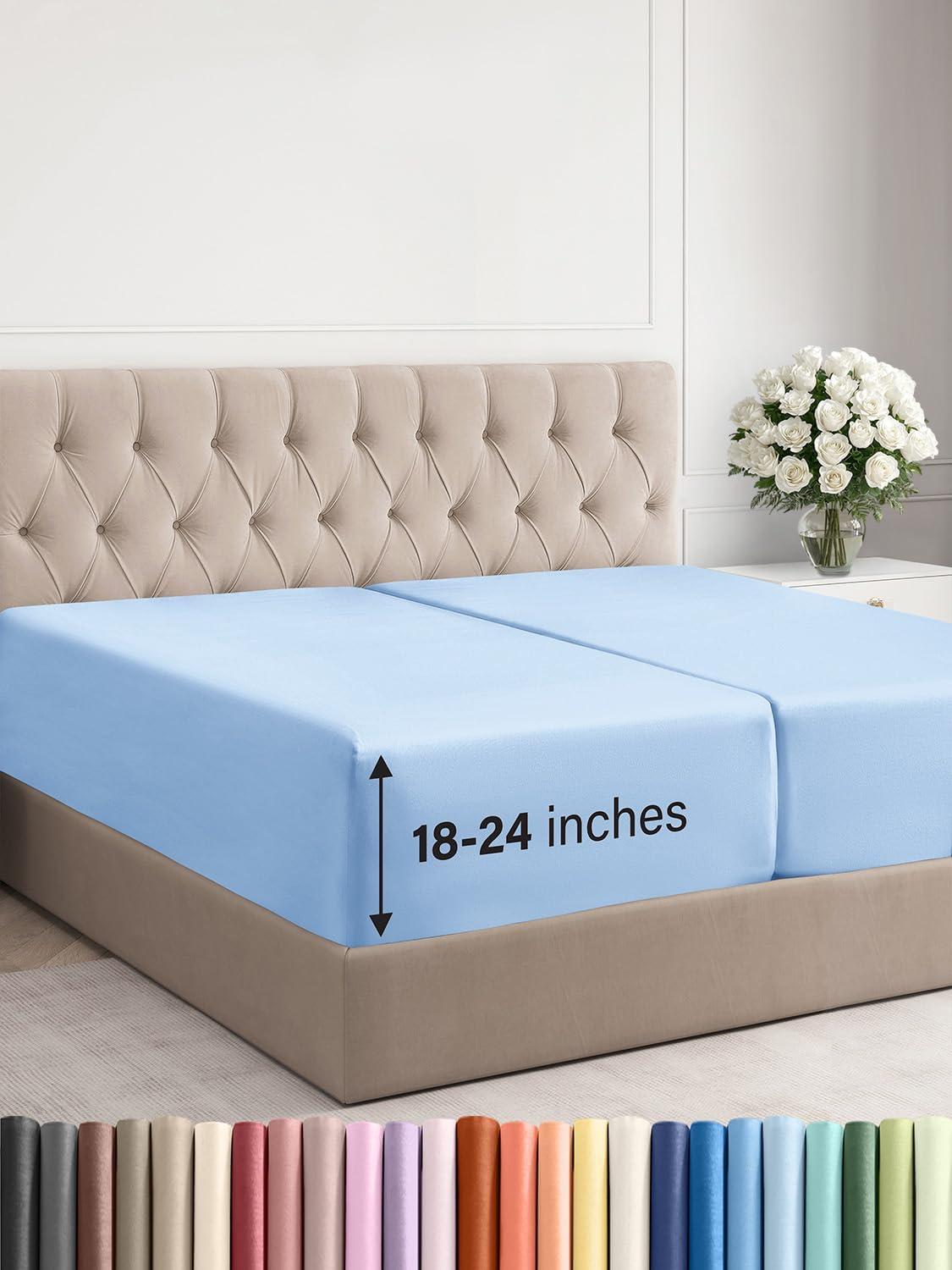 imageExtra Deep Split King Fitted Sheet  Hotel Luxury Single Fitted Sheet Only  Easily Fits 18 inch to 24 inch Mattress  Ultra Soft Wrinkle Free wExtra Deep Pockets  Breathable ampamp Comfy  Light Grey19  Baby Blue