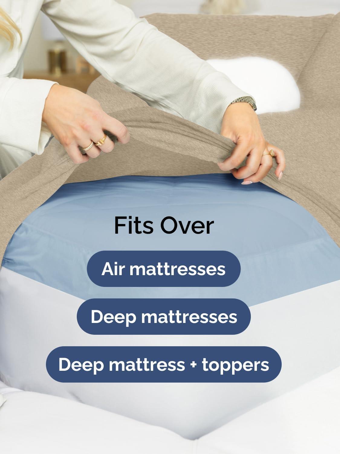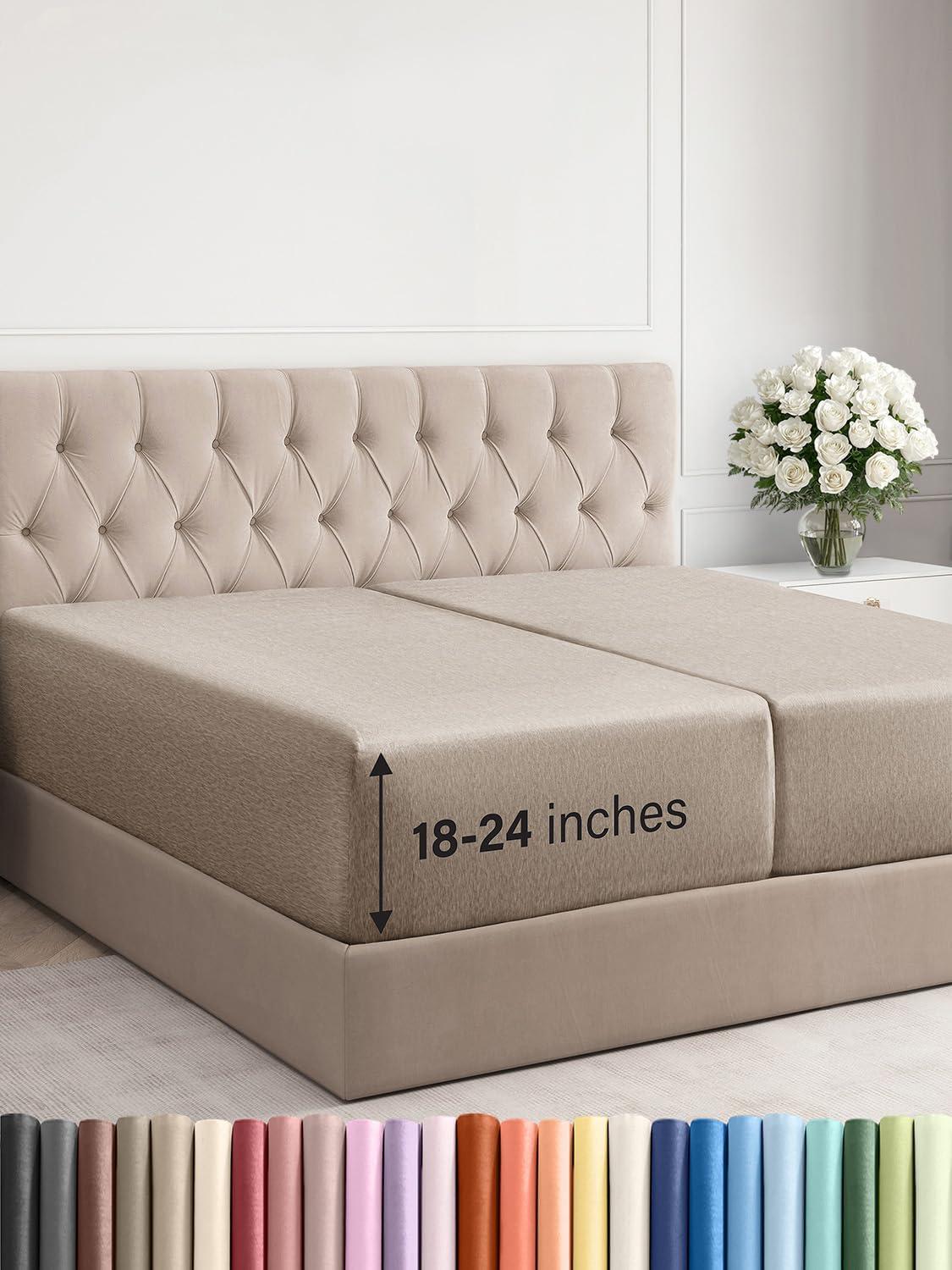 imageExtra Deep Split King Fitted Sheet  Hotel Luxury Single Fitted Sheet Only  Easily Fits 18 inch to 24 inch Mattress  Ultra Soft Wrinkle Free wExtra Deep Pockets  Breathable ampamp Comfy  Light Grey11  Heathered Tan