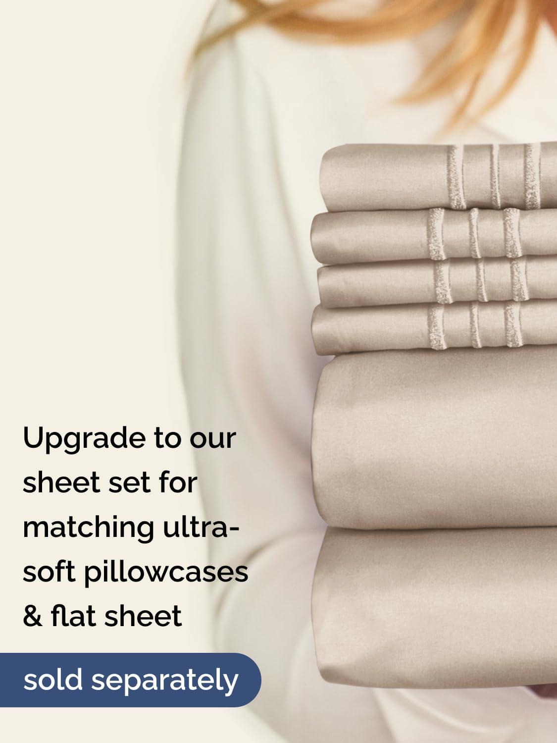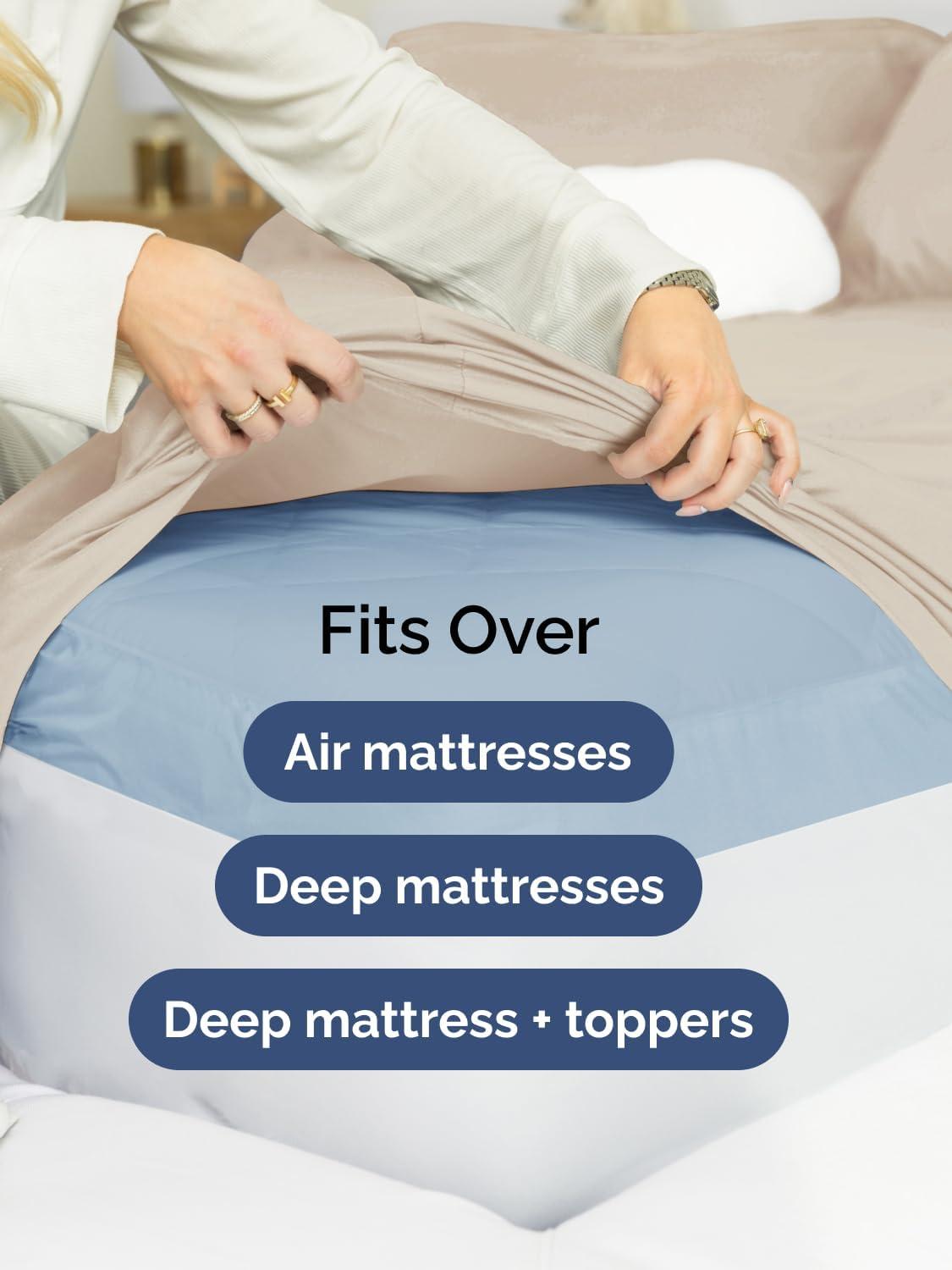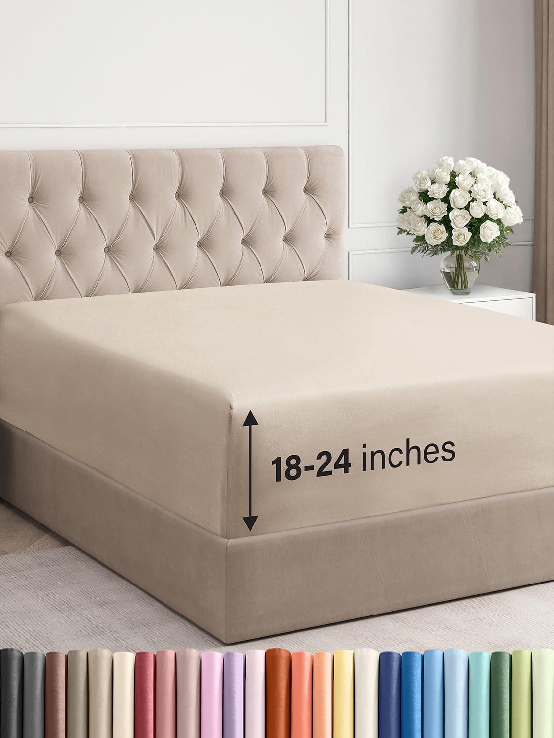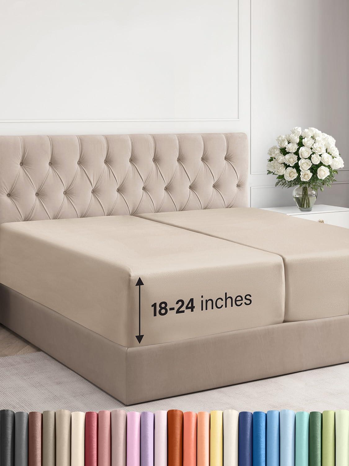 imageExtra Deep Split King Fitted Sheet  Hotel Luxury Single Fitted Sheet Only  Easily Fits 18 inch to 24 inch Mattress  Ultra Soft Wrinkle Free wExtra Deep Pockets  Breathable ampamp Comfy  Light Grey12  Heathered Beige