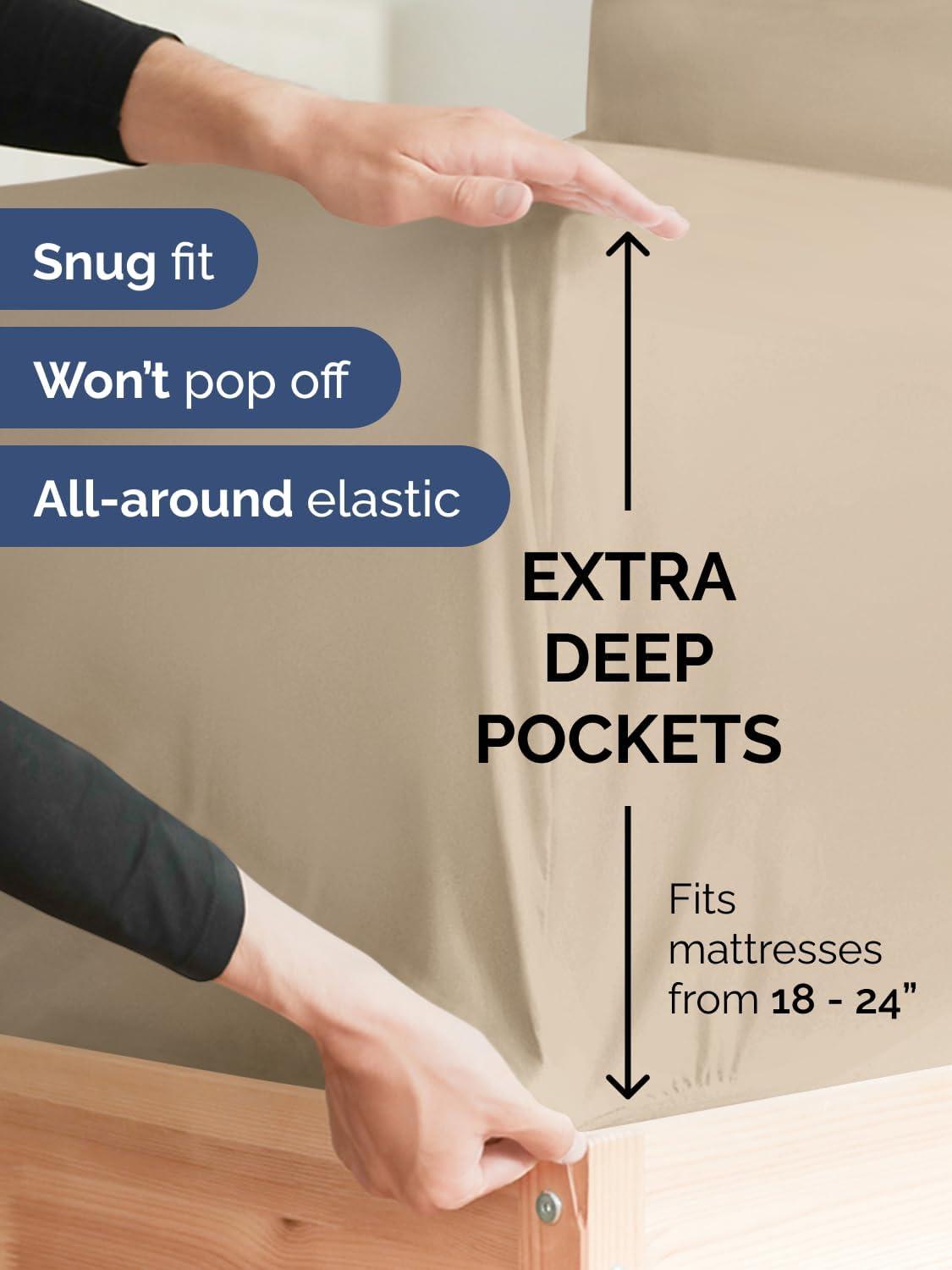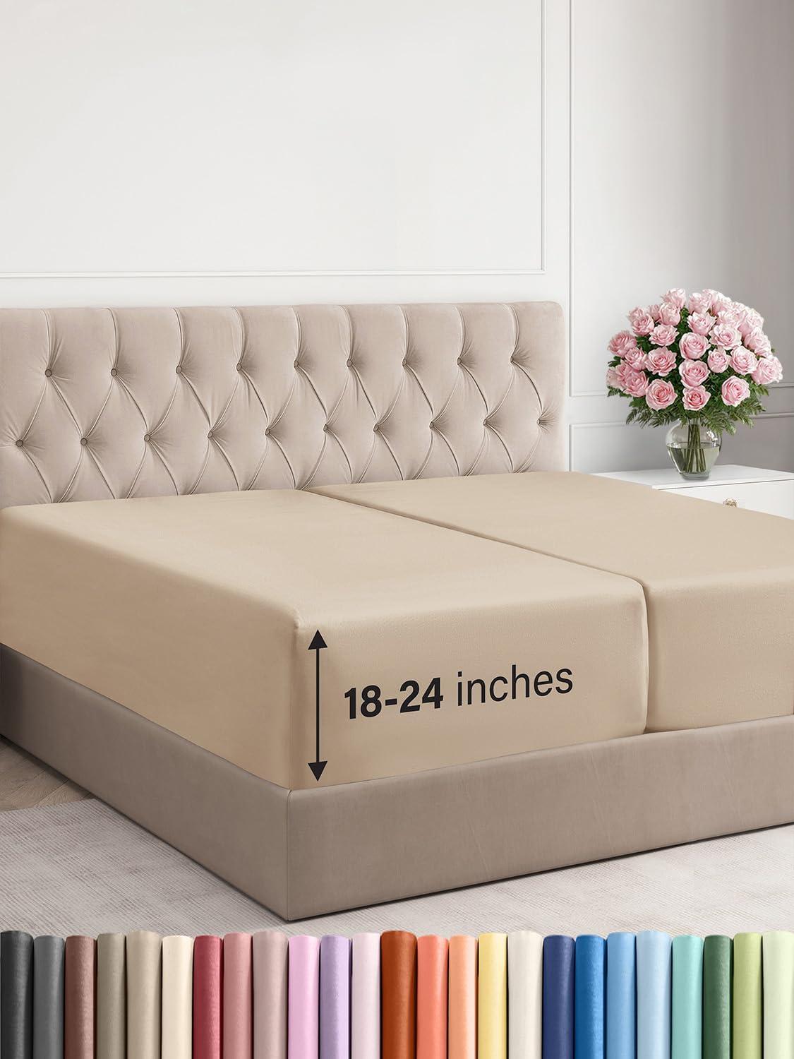 imageExtra Deep Split King Fitted Sheet  Hotel Luxury Single Fitted Sheet Only  Easily Fits 18 inch to 24 inch Mattress  Ultra Soft Wrinkle Free wExtra Deep Pockets  Breathable ampamp Comfy  Light Grey11  Heathered Tan
