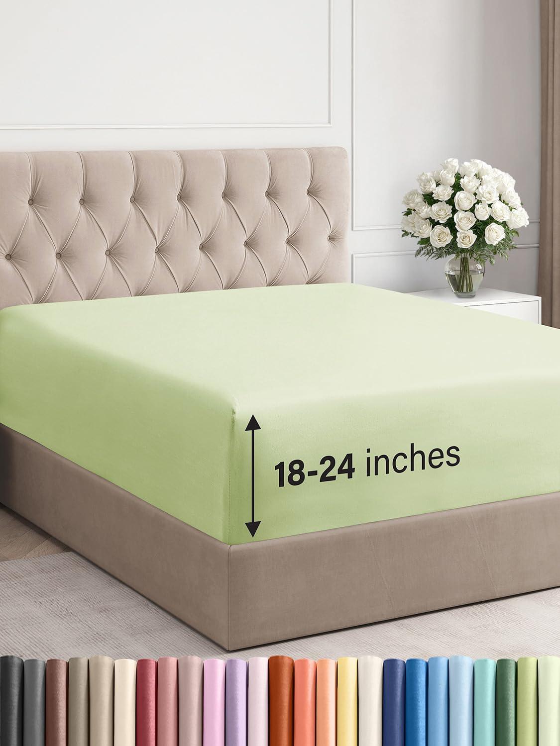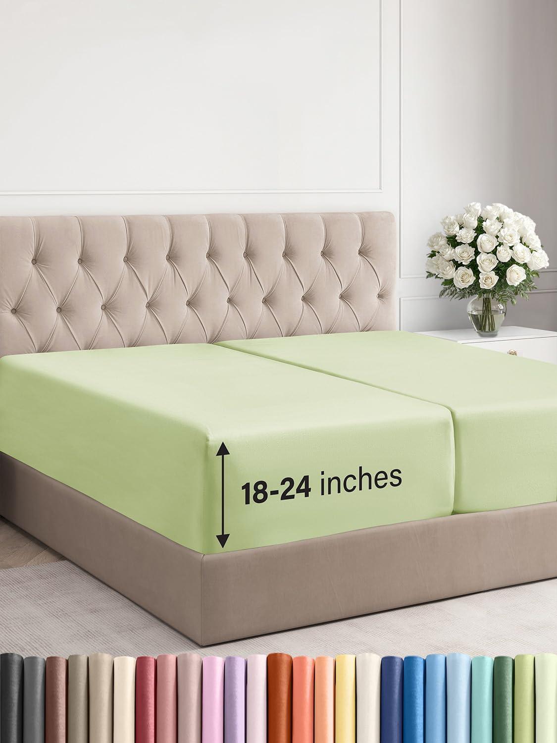 imageExtra Deep Split King Fitted Sheet  Hotel Luxury Single Fitted Sheet Only  Easily Fits 18 inch to 24 inch Mattress  Ultra Soft Wrinkle Free wExtra Deep Pockets  Breathable ampamp Comfy  Light Grey29  Light Sage Green