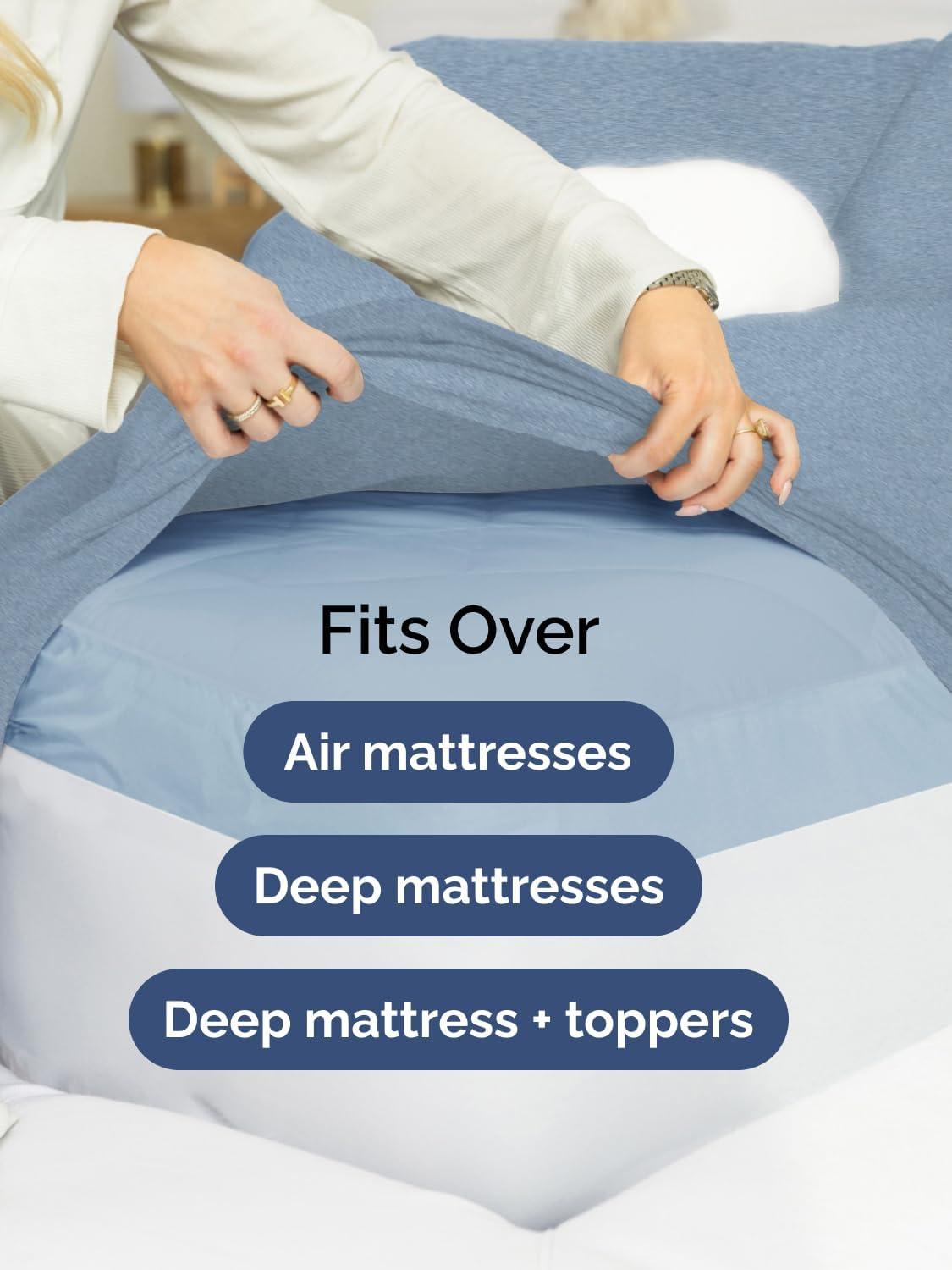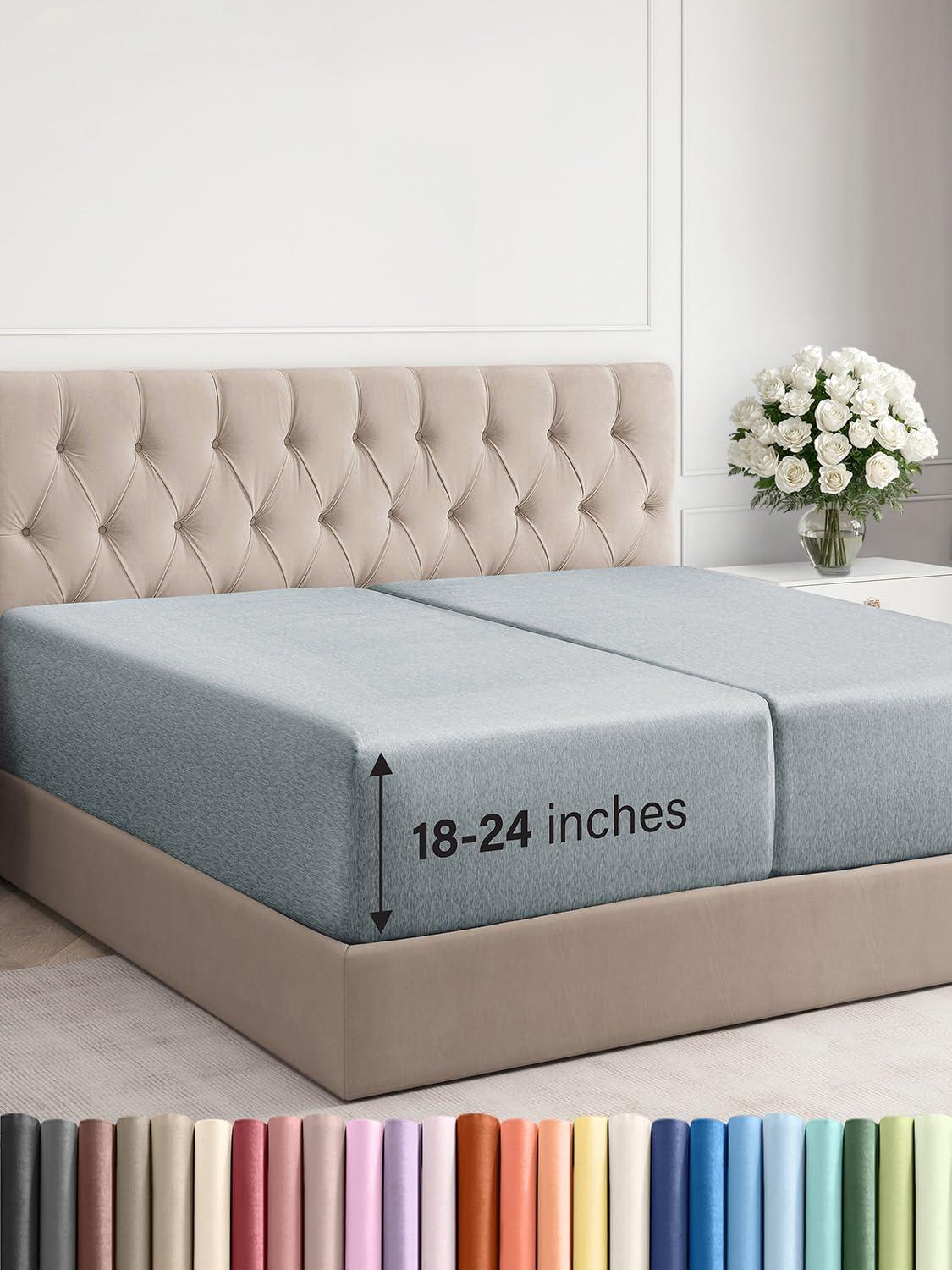 imageExtra Deep Split King Fitted Sheet  Hotel Luxury Single Fitted Sheet Only  Easily Fits 18 inch to 24 inch Mattress  Ultra Soft Wrinkle Free wExtra Deep Pockets  Breathable ampamp Comfy  Light Grey23  Heathered Blue
