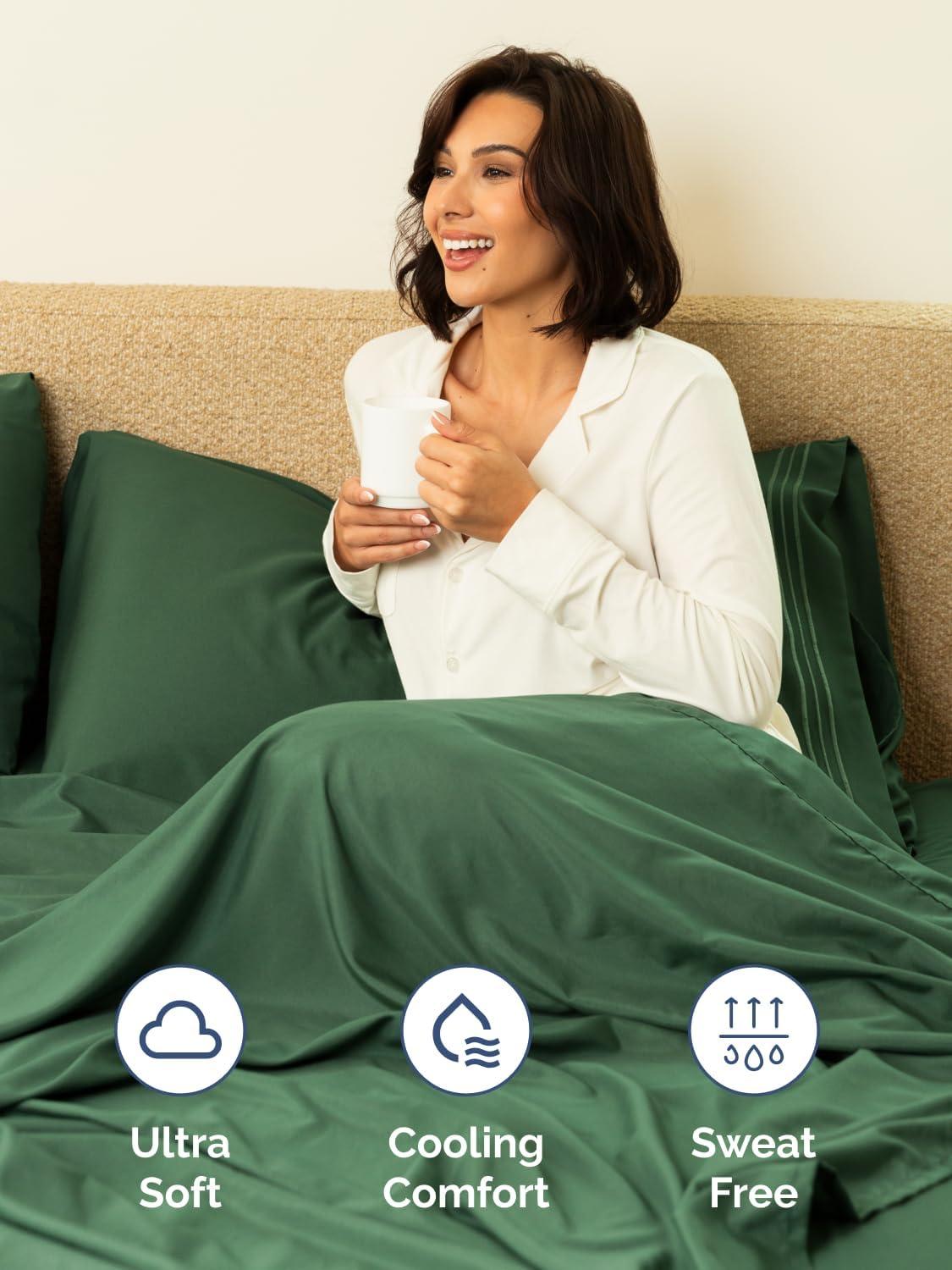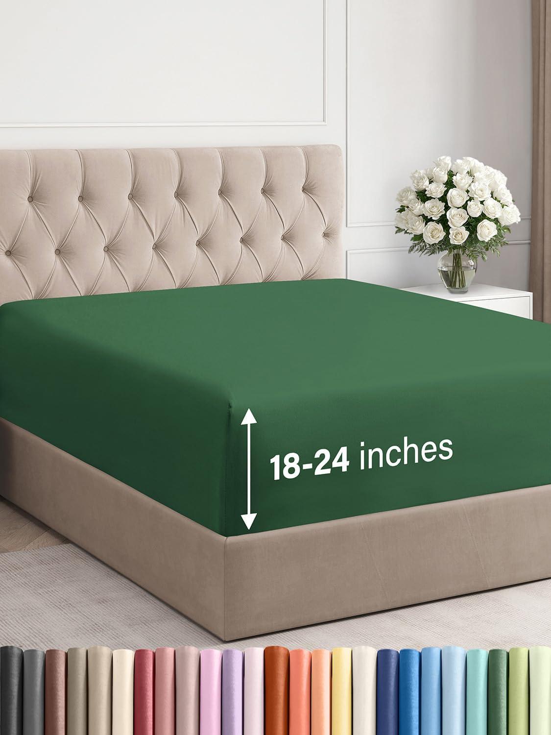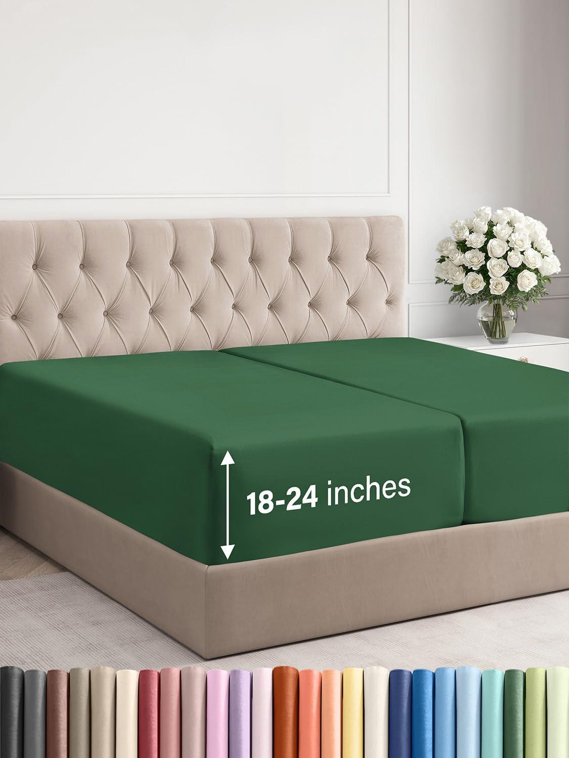 imageExtra Deep Split King Fitted Sheet  Hotel Luxury Single Fitted Sheet Only  Easily Fits 18 inch to 24 inch Mattress  Ultra Soft Wrinkle Free wExtra Deep Pockets  Breathable ampamp Comfy  Light Grey31  Emerald Green