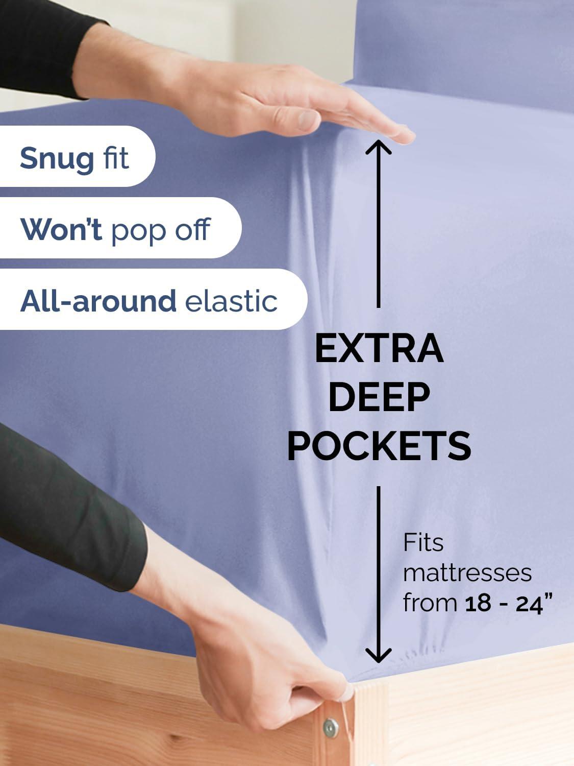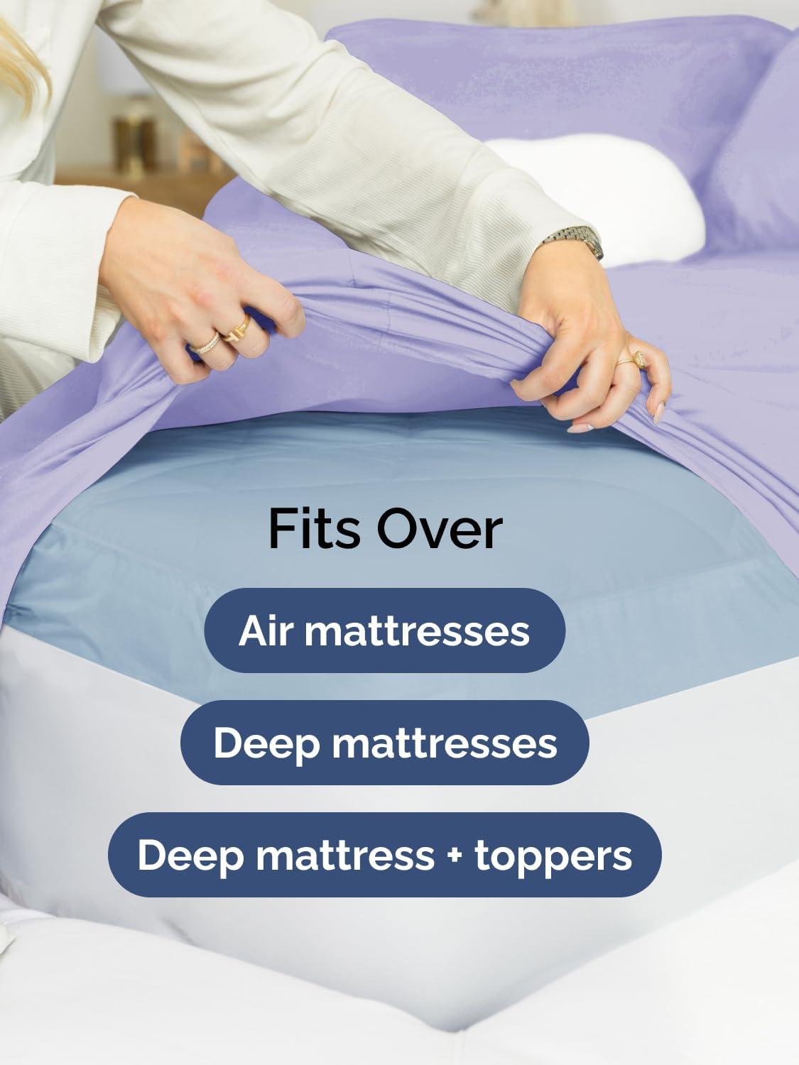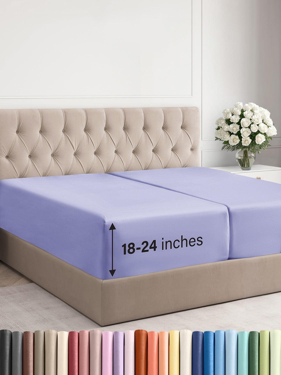 imageExtra Deep Split King Fitted Sheet  Hotel Luxury Single Fitted Sheet Only  Easily Fits 18 inch to 24 inch Mattress  Ultra Soft Wrinkle Free wExtra Deep Pockets  Breathable ampamp Comfy  Light Grey35  Lavender