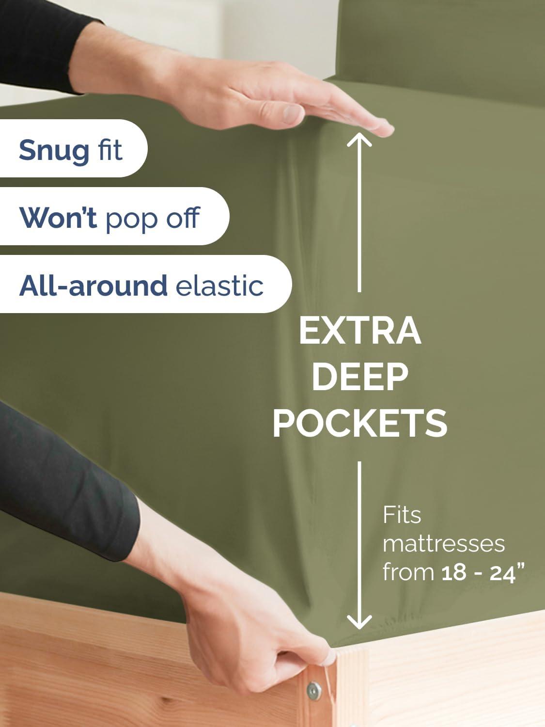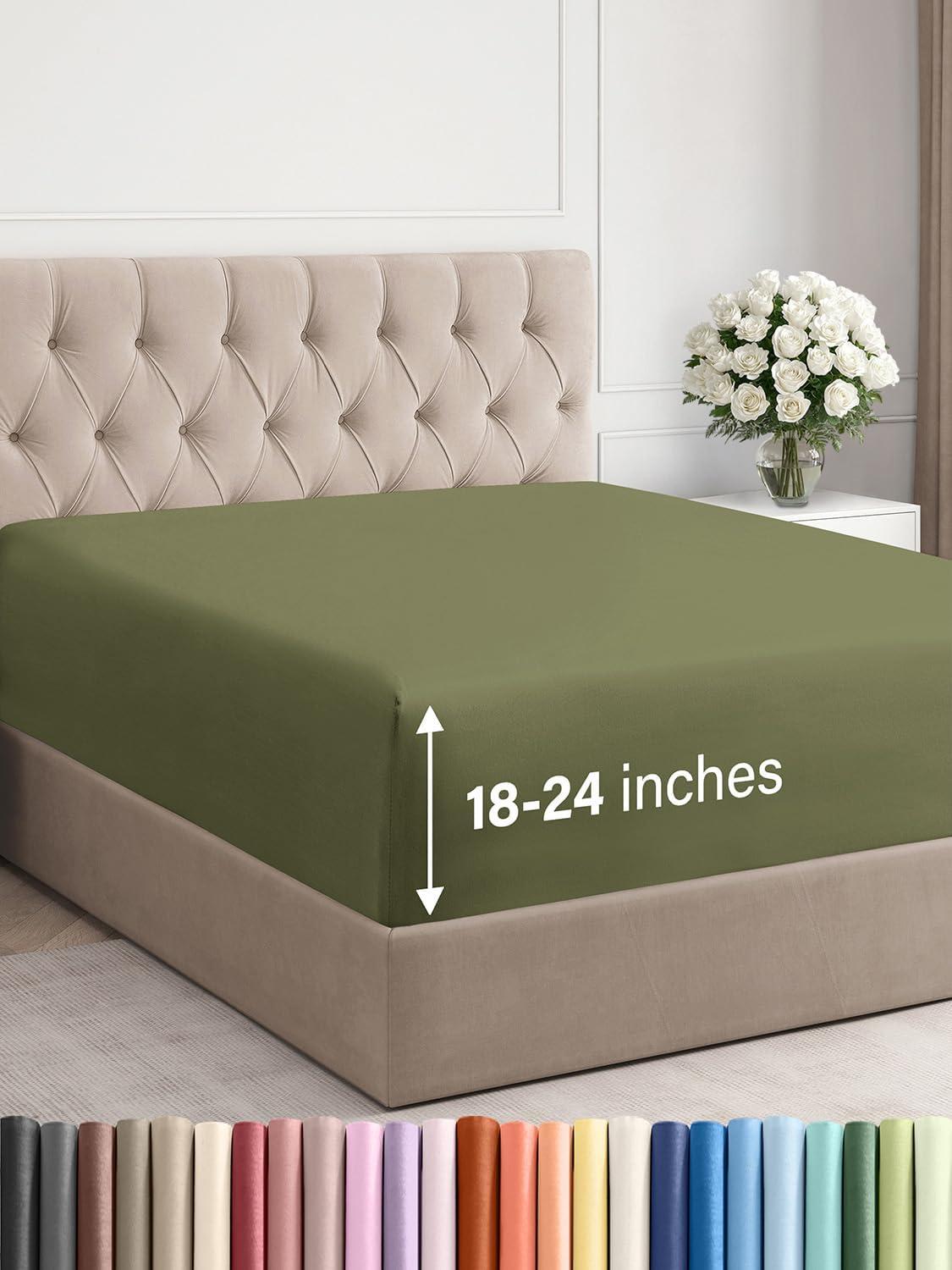 imageExtra Deep Split King Fitted Sheet  Hotel Luxury Single Fitted Sheet Only  Easily Fits 18 inch to 24 inch Mattress  Ultra Soft Wrinkle Free wExtra Deep Pockets  Breathable ampamp Comfy  Light Grey30  Sage Green