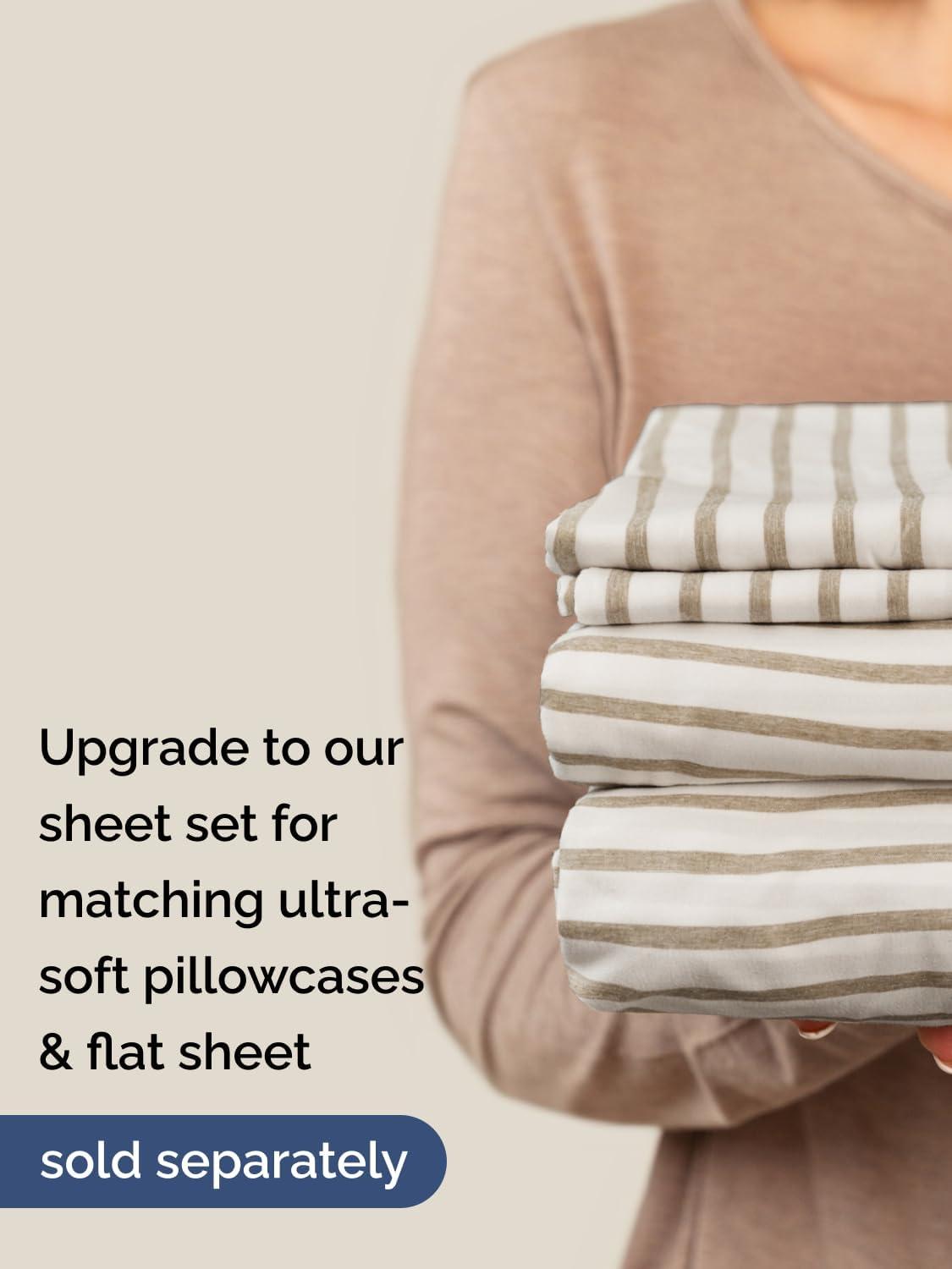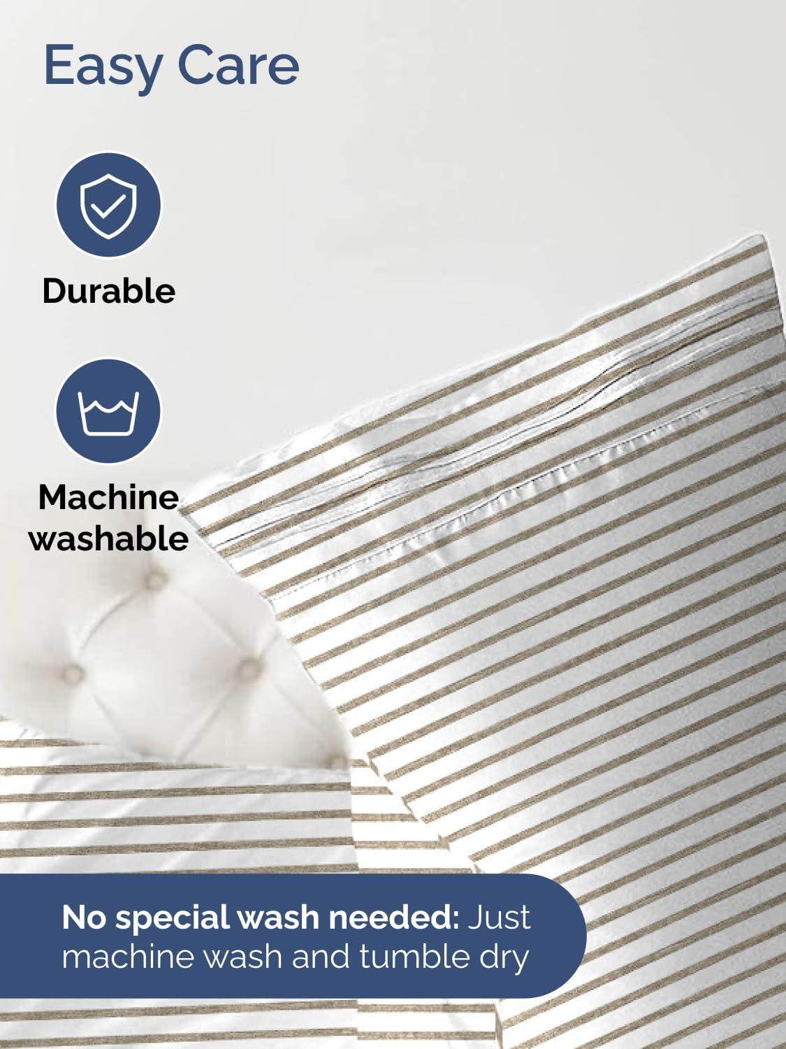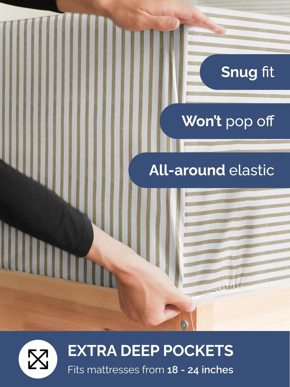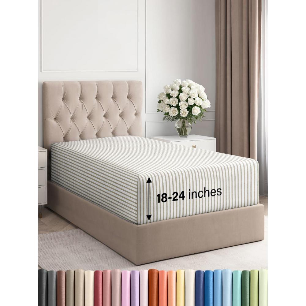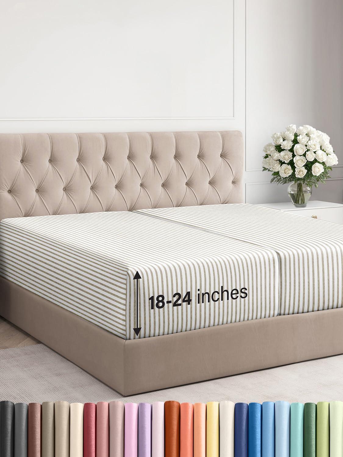 imageExtra Deep Split King Fitted Sheet  Hotel Luxury Single Fitted Sheet Only  Easily Fits 18 inch to 24 inch Mattress  Ultra Soft Wrinkle Free wExtra Deep Pockets  Breathable ampamp Comfy  Light Grey42  Beige Stripes 2
