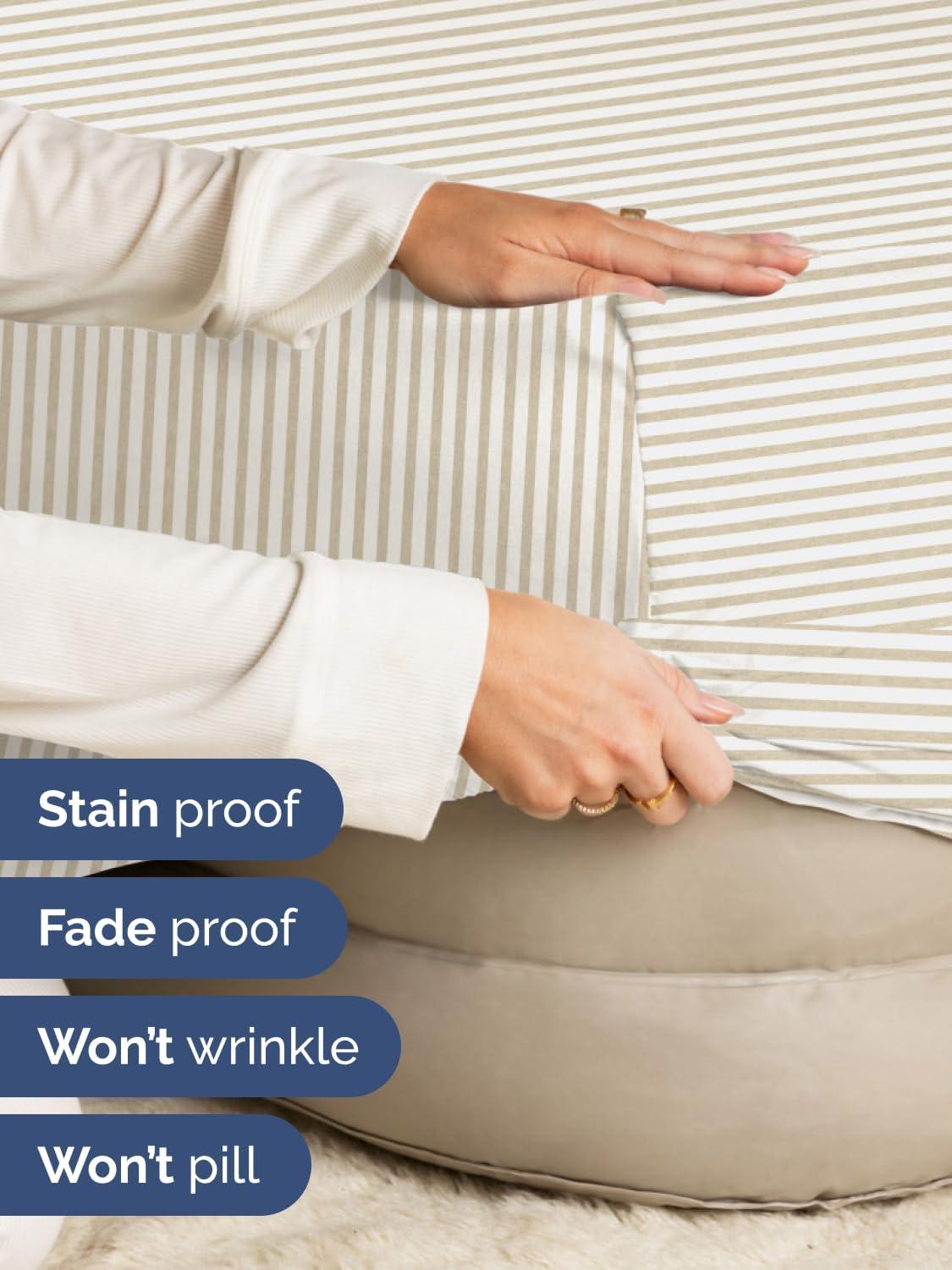 Extra Deep Split King Fitted Sheet – Hotel Luxury Single Fitted Sheet Only – Easily Fits 18 inch to 24 inch Mattress – Ultra Soft, Wrinkle Free w/Extra Deep Pockets – Breathable & Comfy – Light Grey(42 – Beige Stripes 2)