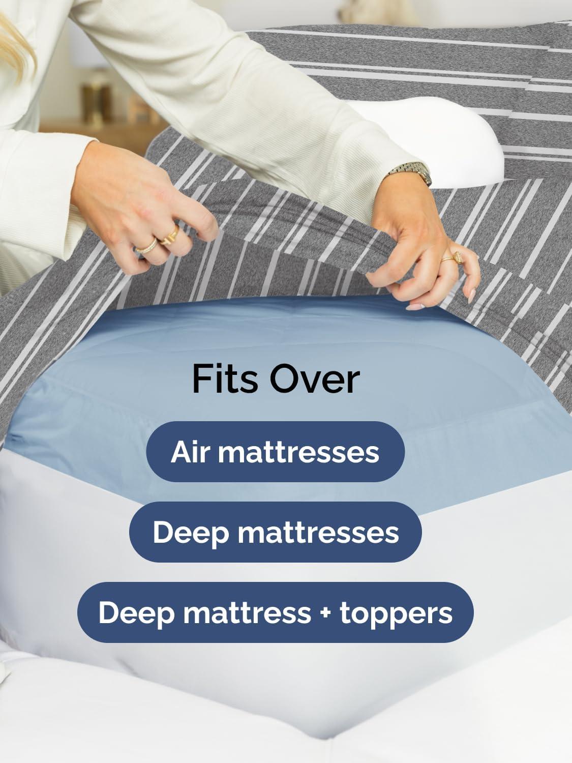 imageExtra Deep Split King Fitted Sheet  Hotel Luxury Single Fitted Sheet Only  Easily Fits 18 inch to 24 inch Mattress  Ultra Soft Wrinkle Free wExtra Deep Pockets  Breathable ampamp Comfy  Light Grey44  Blue Stripes 3