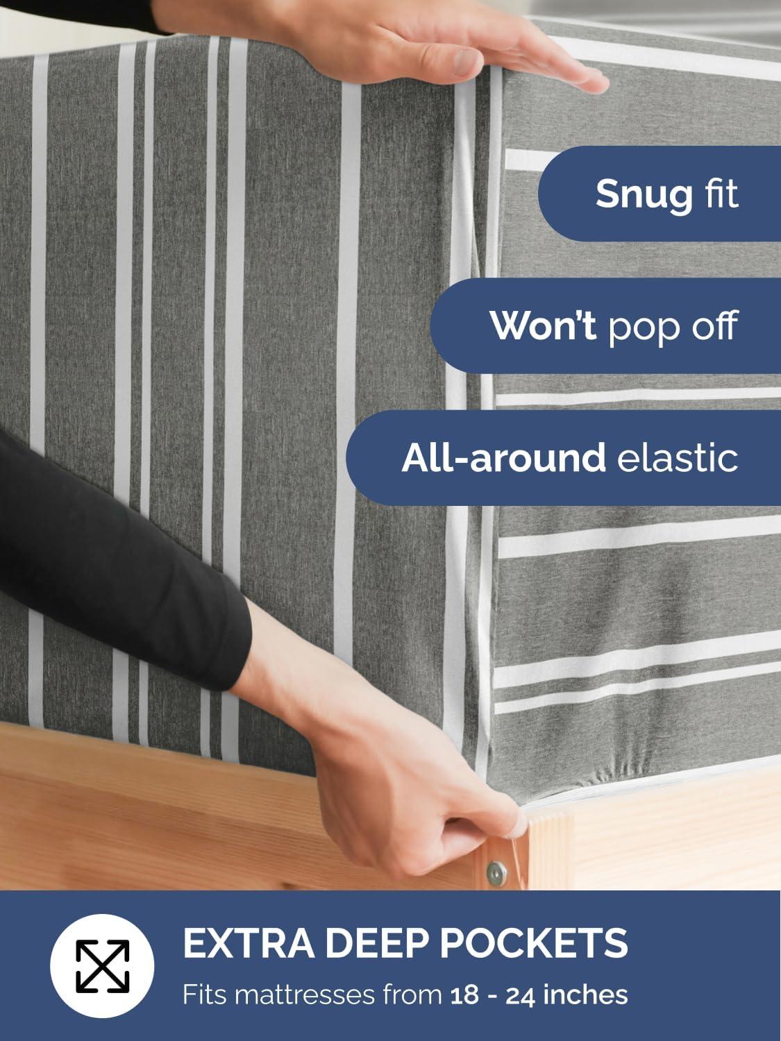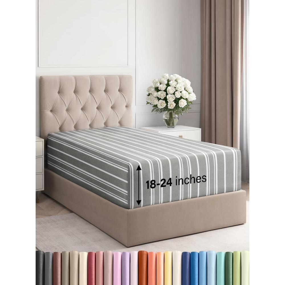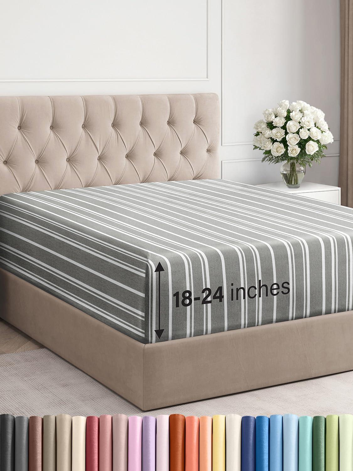 imageExtra Deep Split King Fitted Sheet  Hotel Luxury Single Fitted Sheet Only  Easily Fits 18 inch to 24 inch Mattress  Ultra Soft Wrinkle Free wExtra Deep Pockets  Breathable ampamp Comfy  Light Grey45  Grey Stripes 3