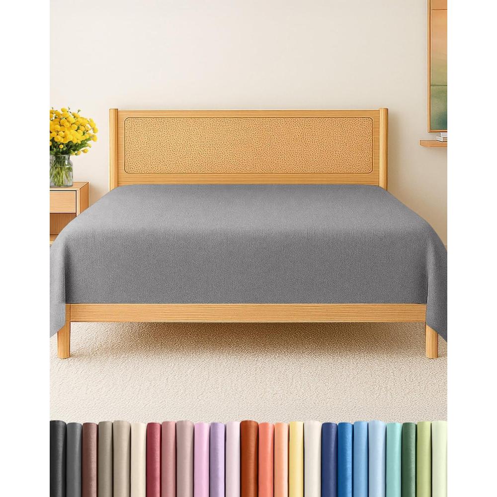 Full Size Flat Sheet - Hotel Quality Top Flat Bed Sheet Only - Ultra-Soft, Breathable & Cooling - Fade & Wrinkle Free - Easy-Care, Stain & Shrink Resistant Bedding - Easy-Fit & Oeko-Tex - French Grey(40 - Heathered Grey)
