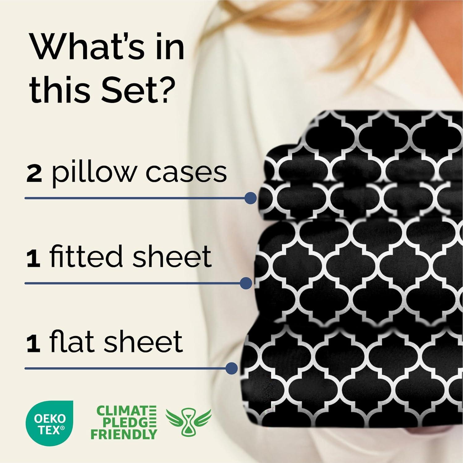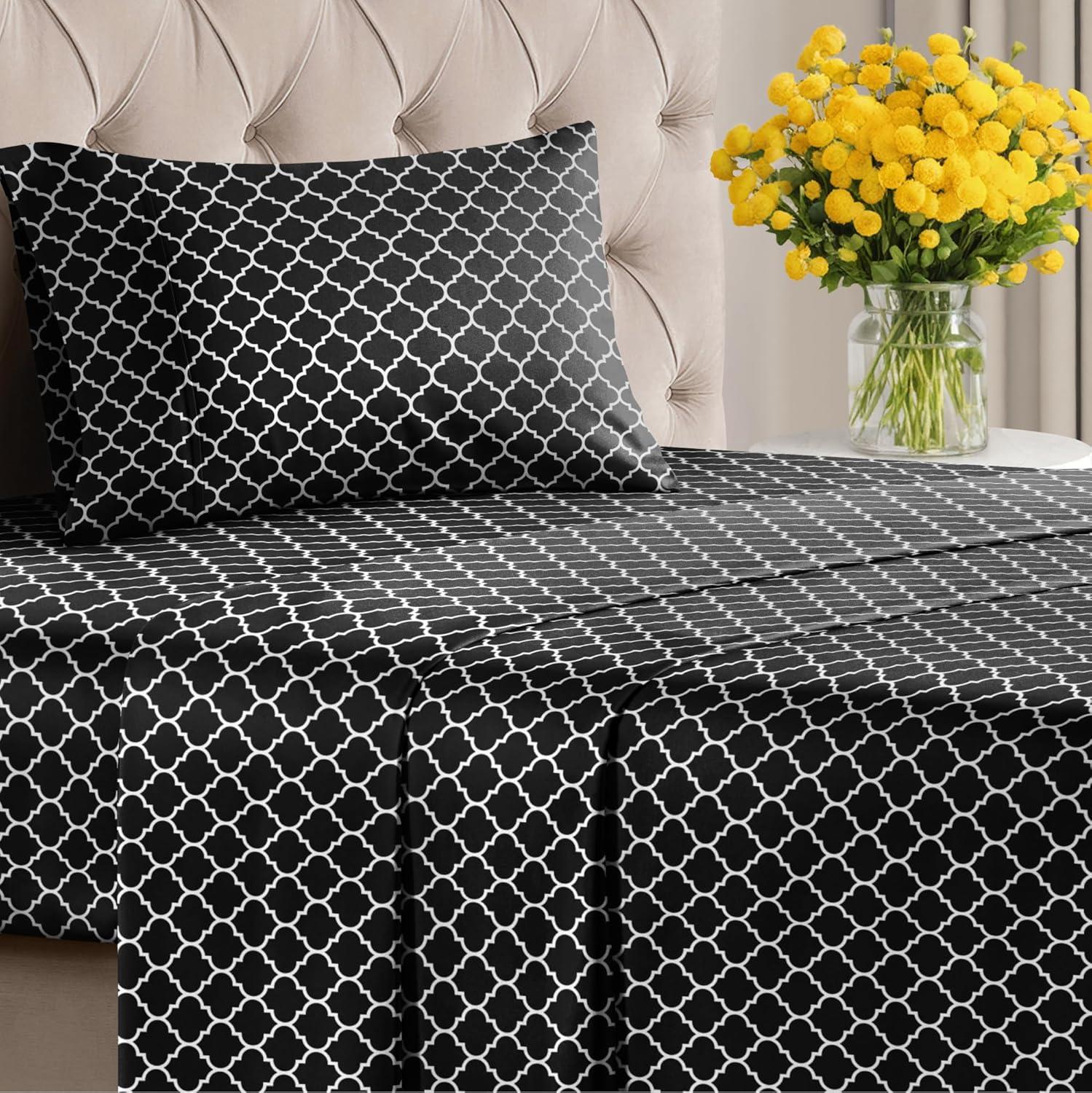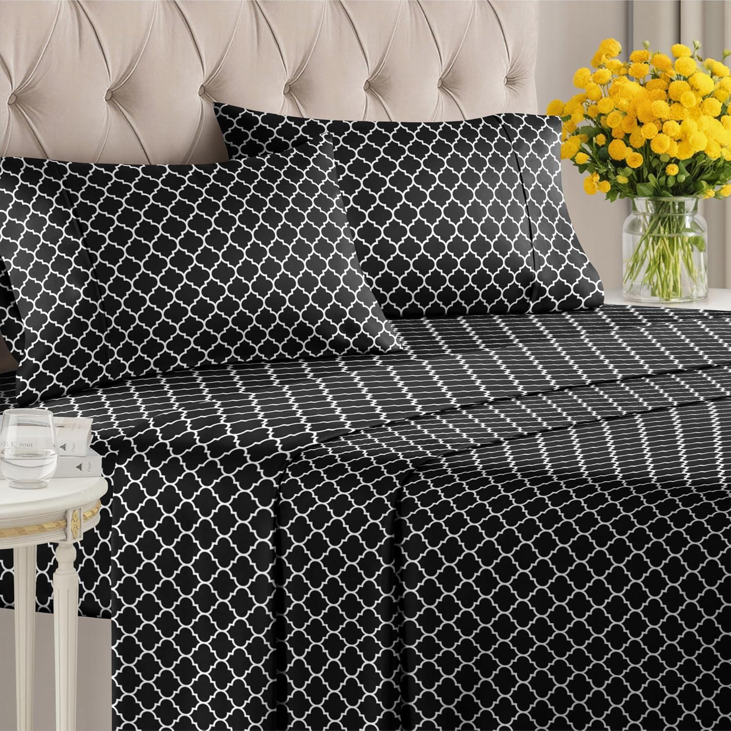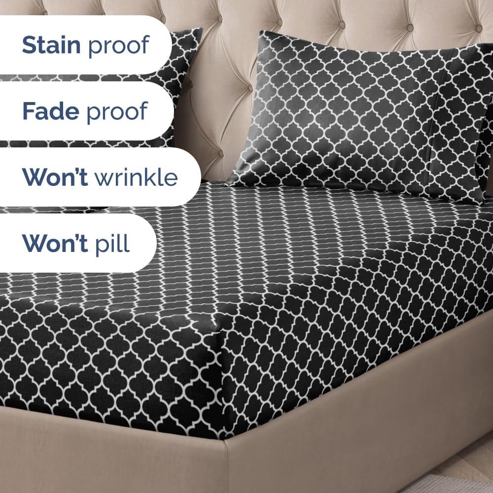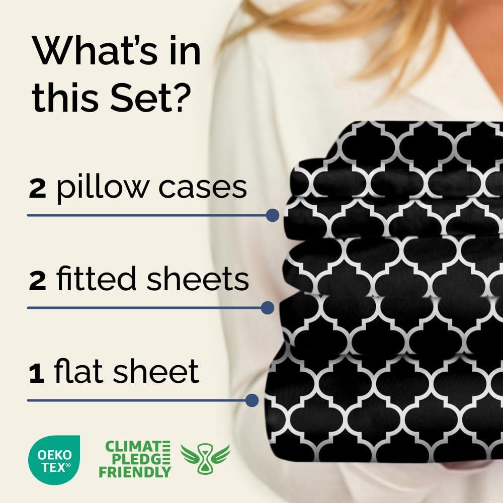 imageGrey Geometric Bed Sheets  1 Flat amp 1 Fitted Sheet amp 2 Pillowcases w Deep Pockets  Wrinkle amp Fade Free UltraSoft Breathable and Cooling  Luxury Moroccan Bed Set  Queen Size  Gray Quatrefoil56  Black Quatrefoil