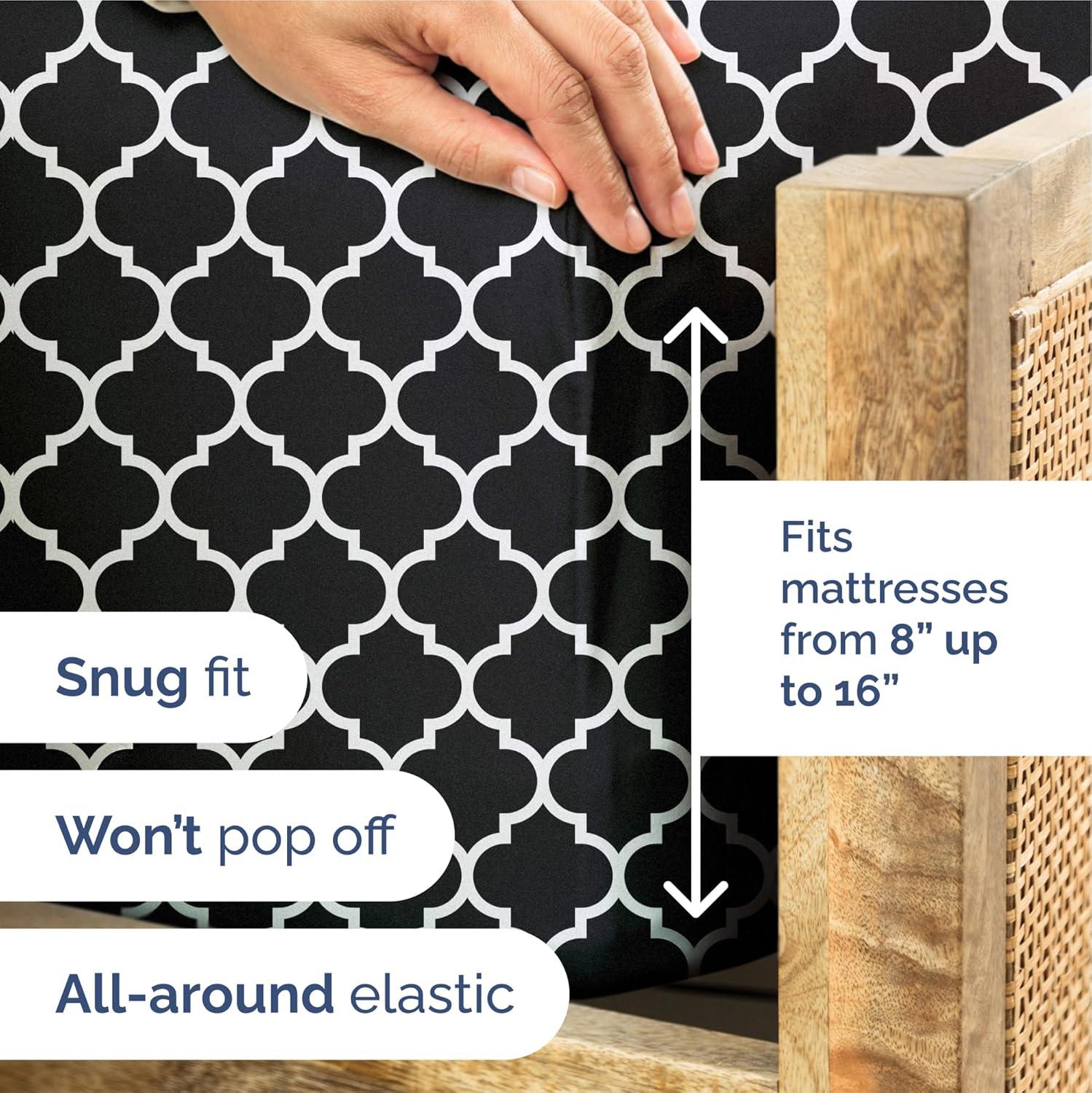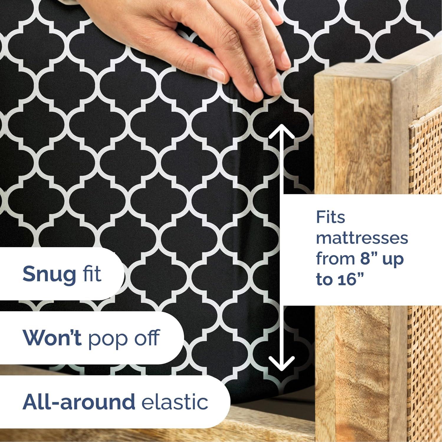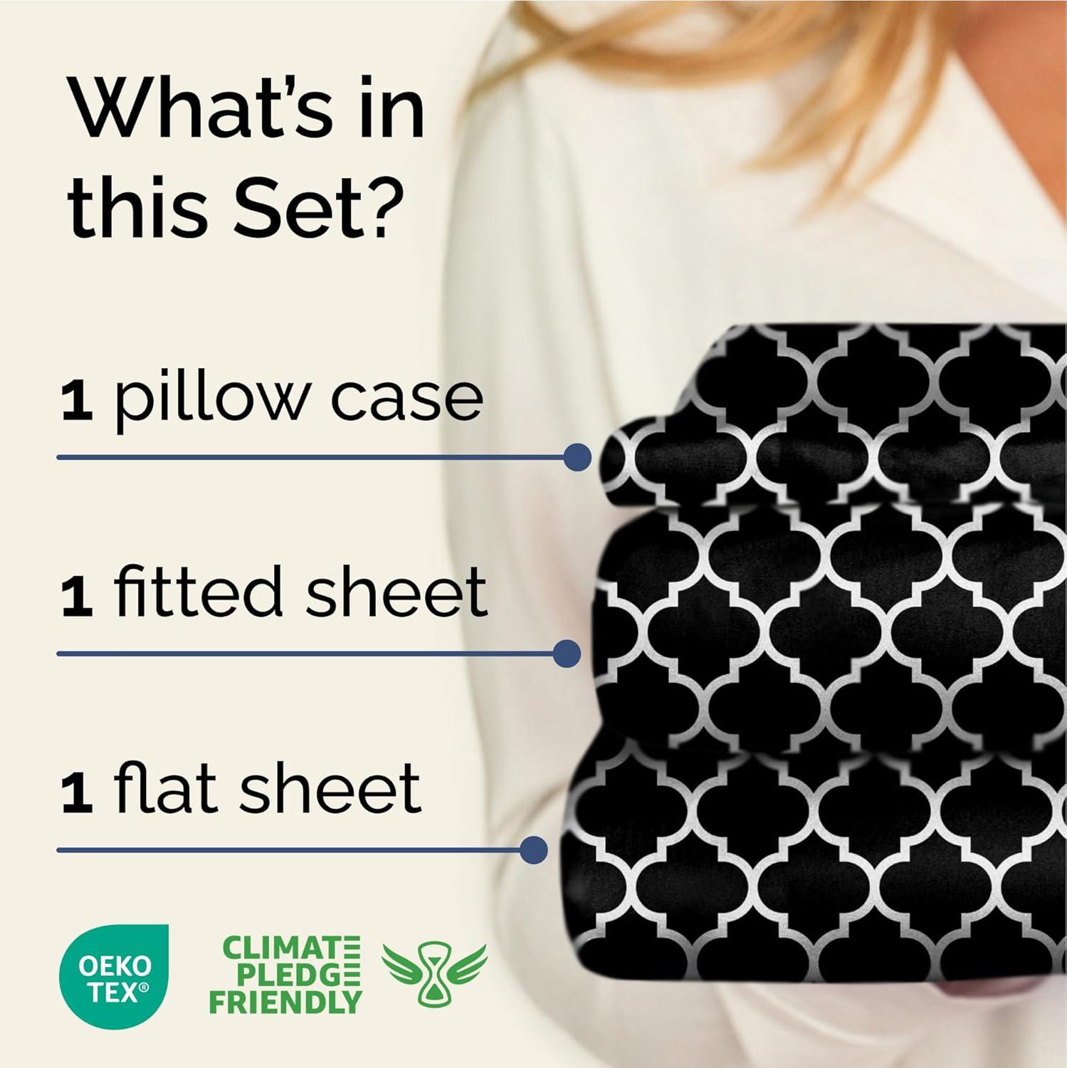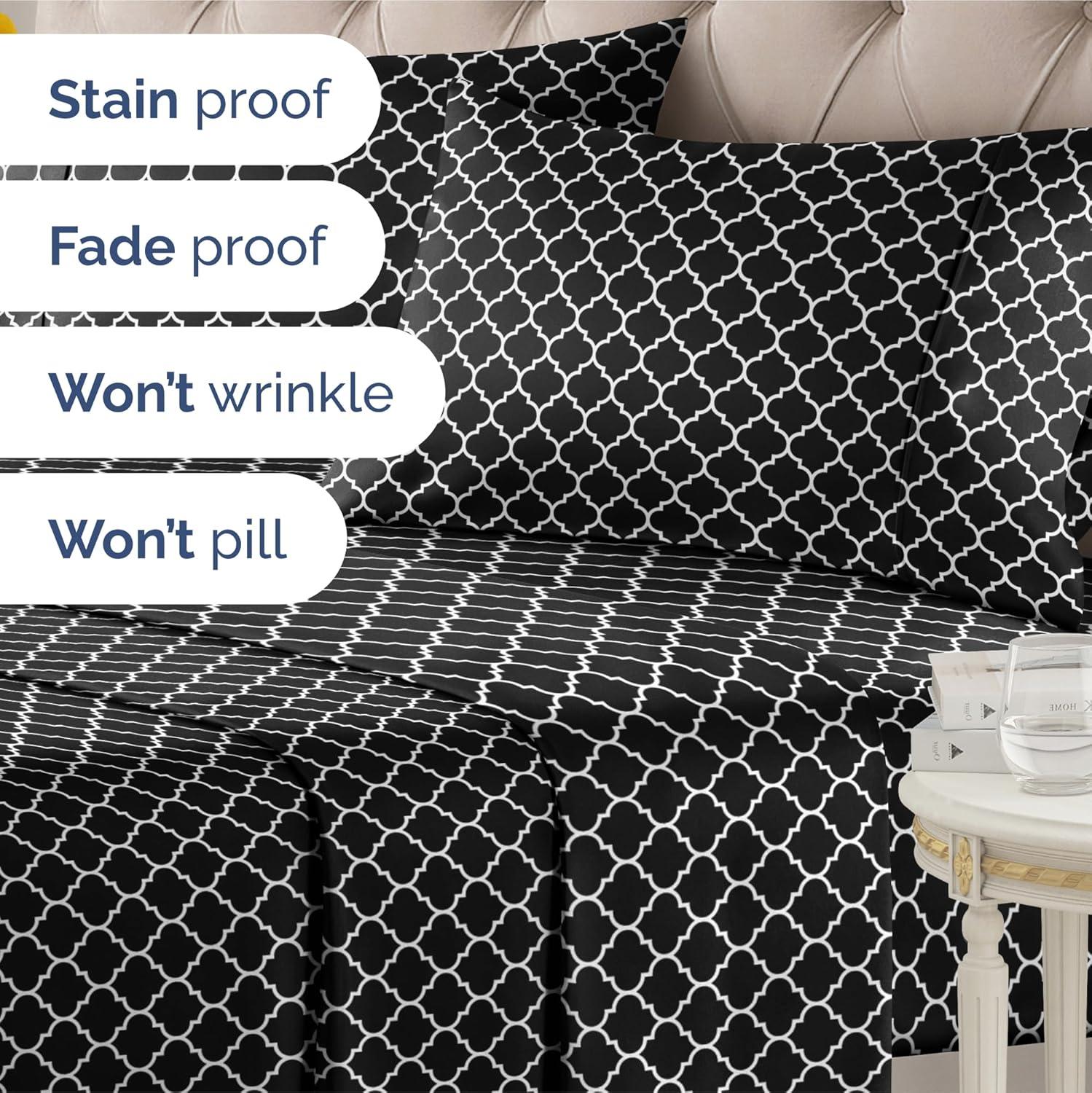imageGrey Geometric Bed Sheets  1 Flat amp 1 Fitted Sheet amp 2 Pillowcases w Deep Pockets  Wrinkle amp Fade Free UltraSoft Breathable and Cooling  Luxury Moroccan Bed Set  Queen Size  Gray Quatrefoil56  Black Quatrefoil