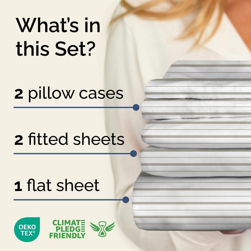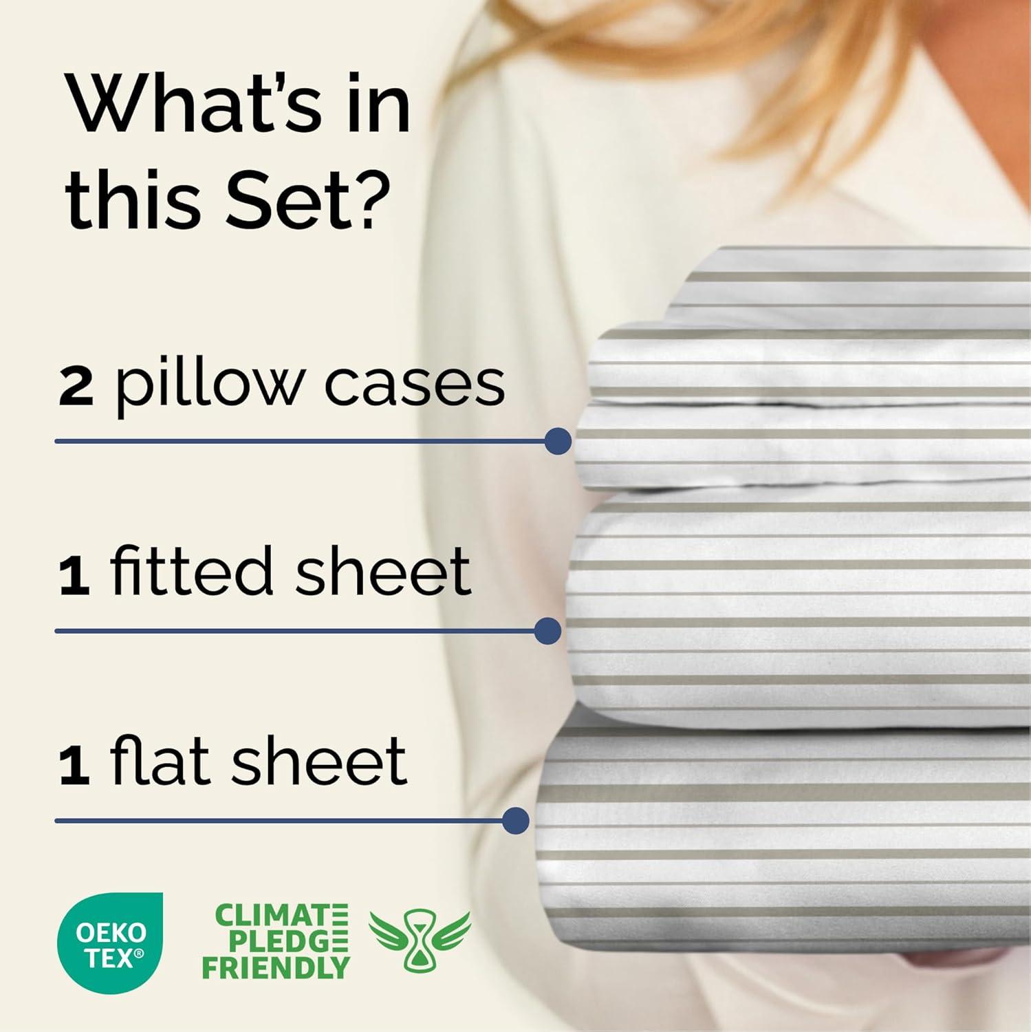 imageGrey Geometric Bed Sheets  1 Flat amp 1 Fitted Sheet amp 2 Pillowcases w Deep Pockets  Wrinkle amp Fade Free UltraSoft Breathable and Cooling  Luxury Moroccan Bed Set  Queen Size  Gray Quatrefoil58  Grey Stripe