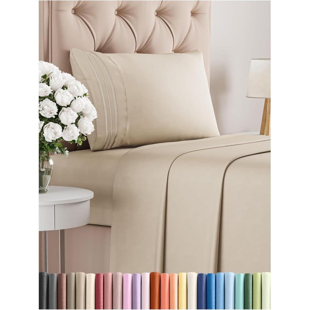 imageKing Size 4 Piece Sheet Set  Comfy Breathable ampamp Cooling Bed Sheets Set  Hotel Luxury Bedding for Women Men Kids Teens Boys ampamp Girls  Deep Pockets UltraSoft Wrinkle Free  OekoTex  Burgundy12  Heathered Beige