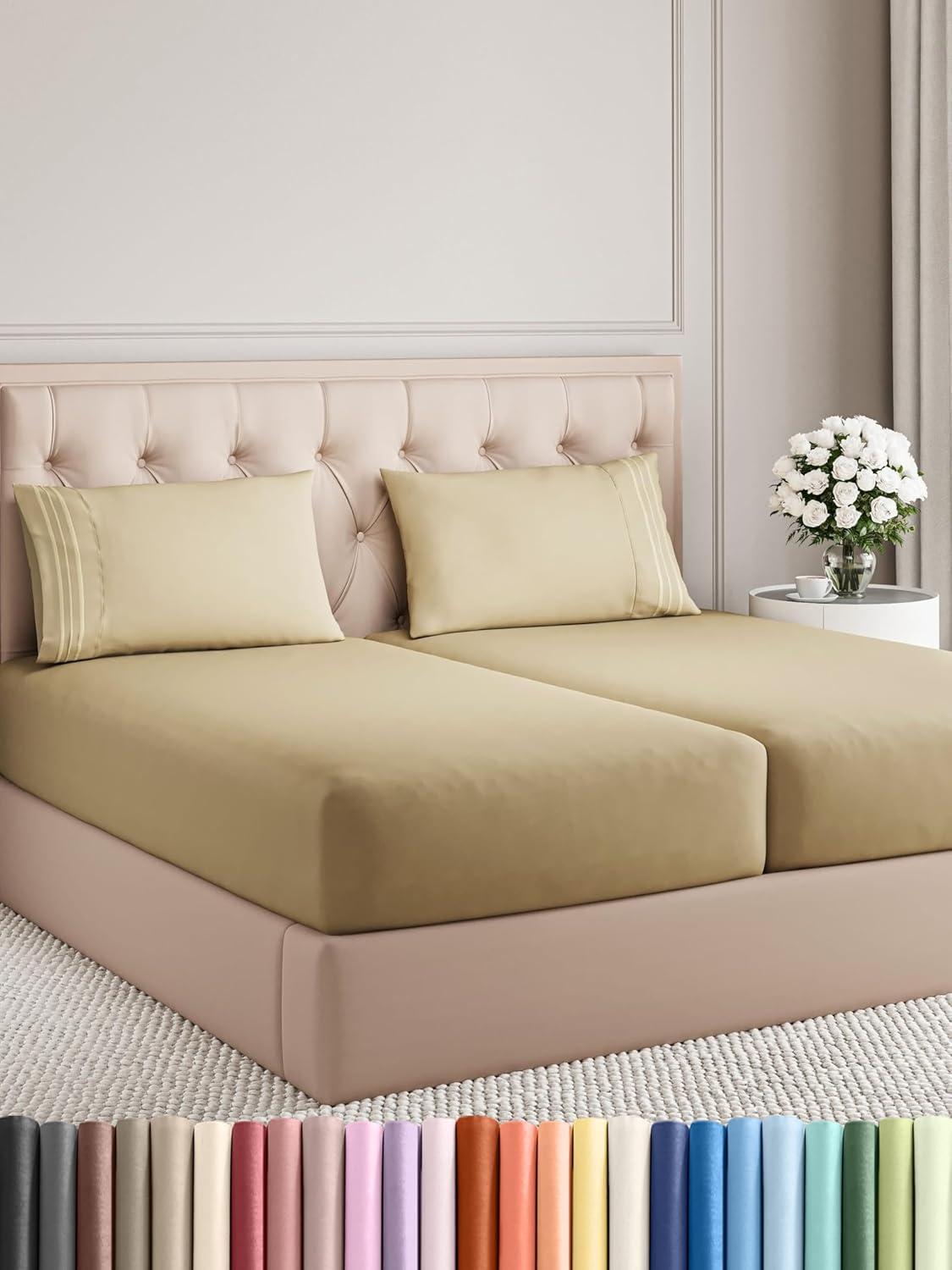imageKing Size 4 Piece Sheet Set  Comfy Breathable ampamp Cooling Bed Sheets Set  Hotel Luxury Bedding for Women Men Kids Teens Boys ampamp Girls  Deep Pockets UltraSoft Wrinkle Free  OekoTex  Burgundy15  Khaki