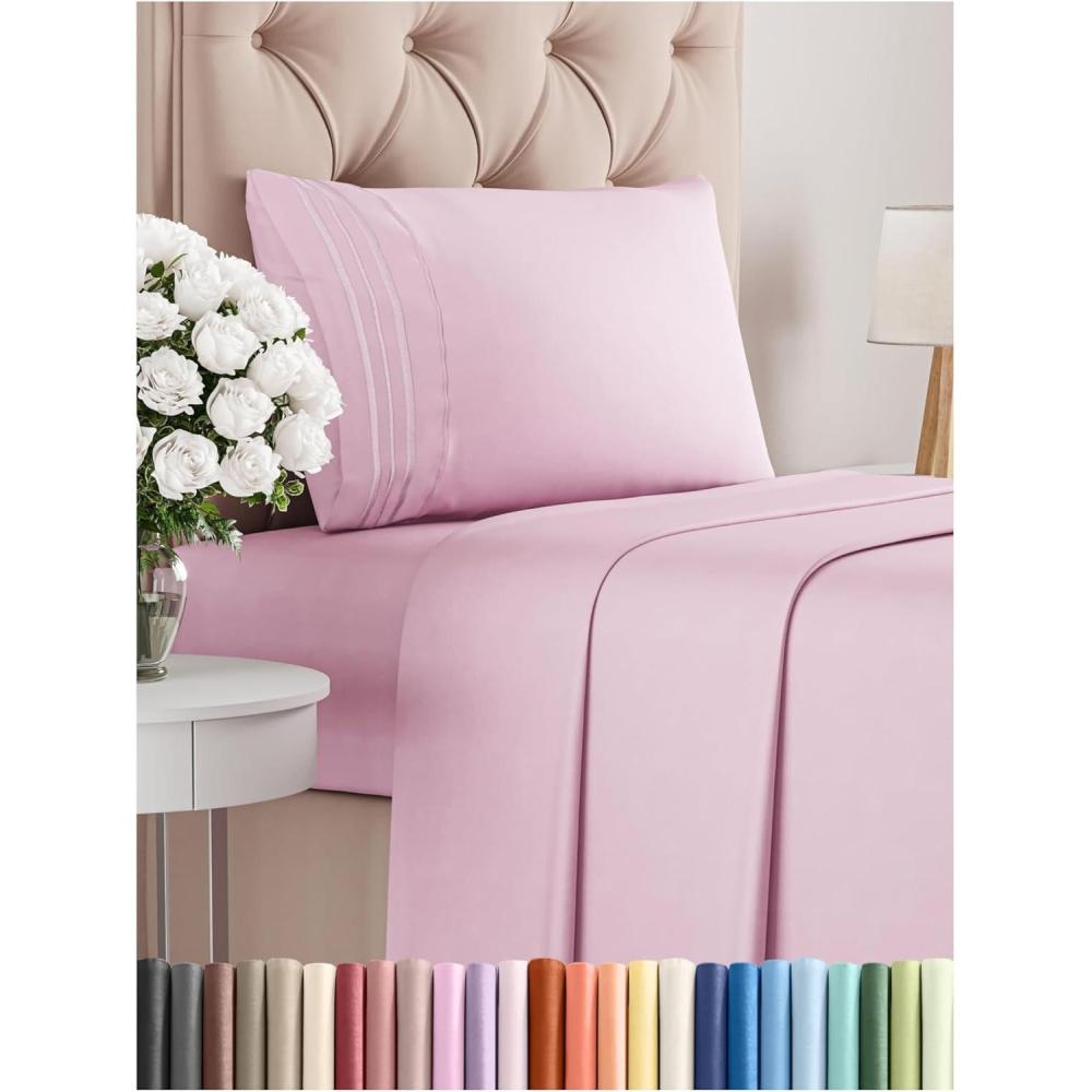 imageKing Size 4 Piece Sheet Set  Comfy Breathable ampamp Cooling Bed Sheets Set  Hotel Luxury Bedding for Women Men Kids Teens Boys ampamp Girls  Deep Pockets UltraSoft Wrinkle Free  OekoTex  Burgundy34  Light Pink