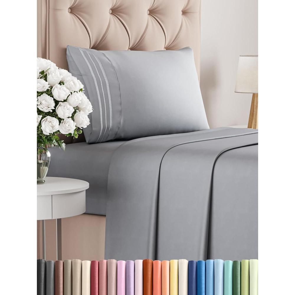 imageKing Size 4 Piece Sheet Set  Comfy Breathable ampamp Cooling Bed Sheets Set  Hotel Luxury Bedding for Women Men Kids Teens Boys ampamp Girls  Deep Pockets UltraSoft Wrinkle Free  OekoTex  Burgundy06  Heathered Grey