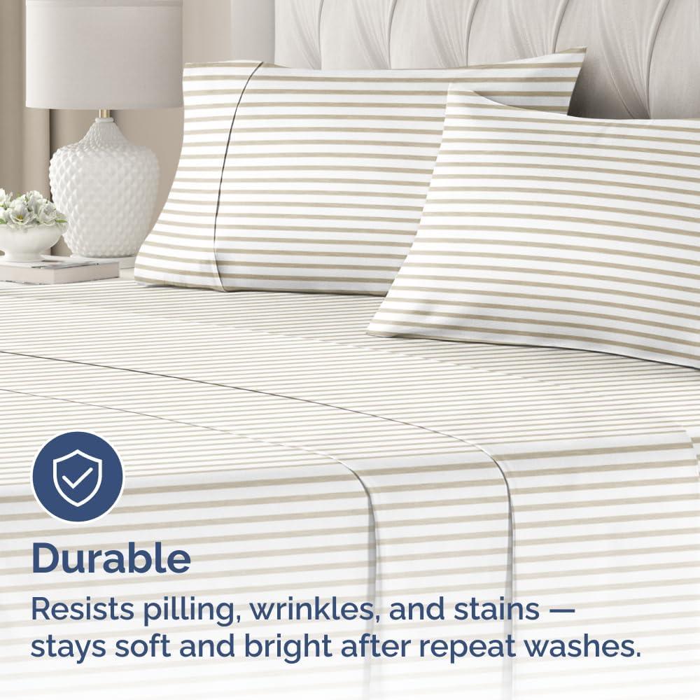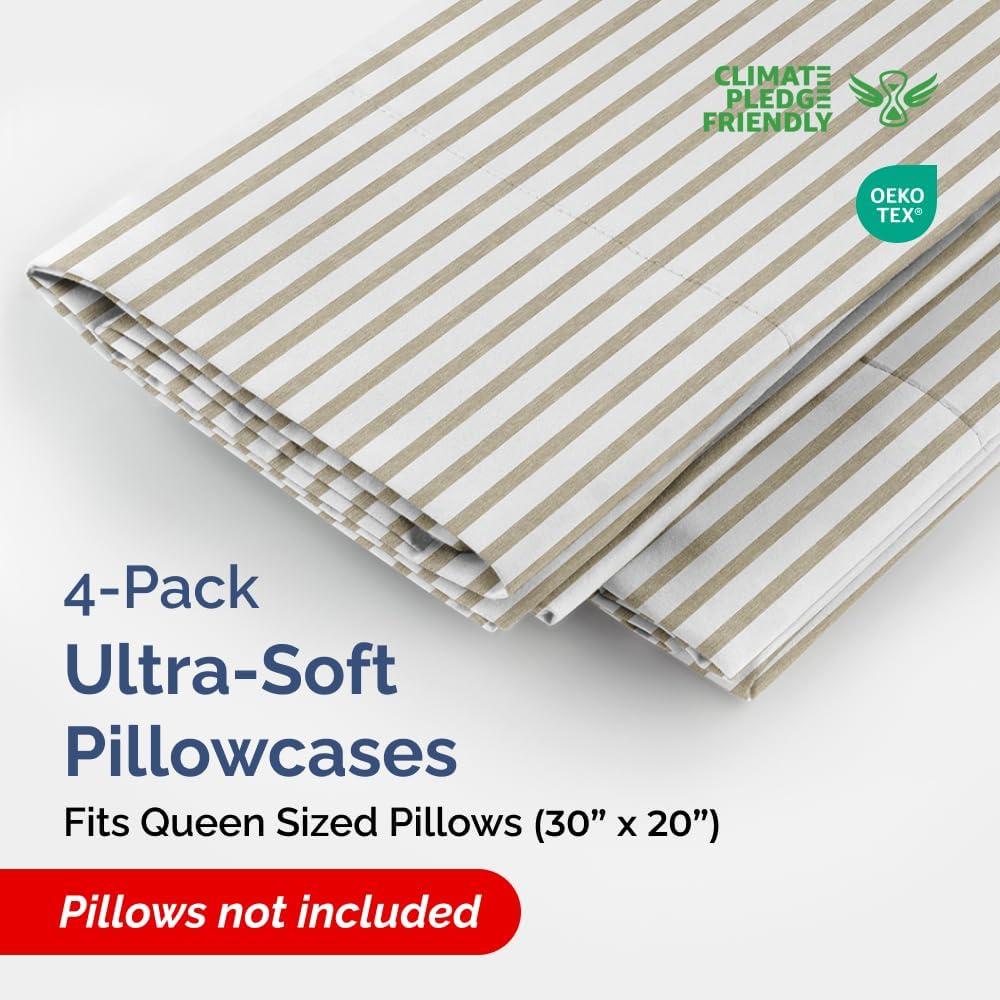 imageQueen Pillow Cases Set of 4  Ultra Soft Hotel Quality Pillowcase Covers  Comfy Cozy ampamp Wrinkle Free  Shrink Stain ampamp Fade Resistant  Machine Washable Pillow Protectors  4 Piece Set  Terracotta42  Beige Stripes 2