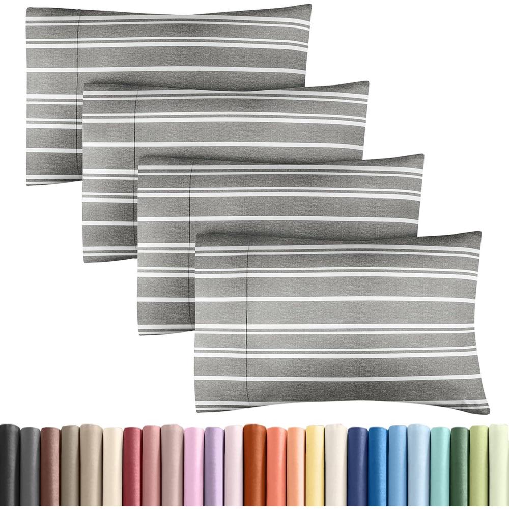imageQueen Pillow Cases Set of 4  Ultra Soft Hotel Quality Pillowcase Covers  Comfy Cozy ampamp Wrinkle Free  Shrink Stain ampamp Fade Resistant  Machine Washable Pillow Protectors  4 Piece Set  Terracotta45  Grey Stripes 3