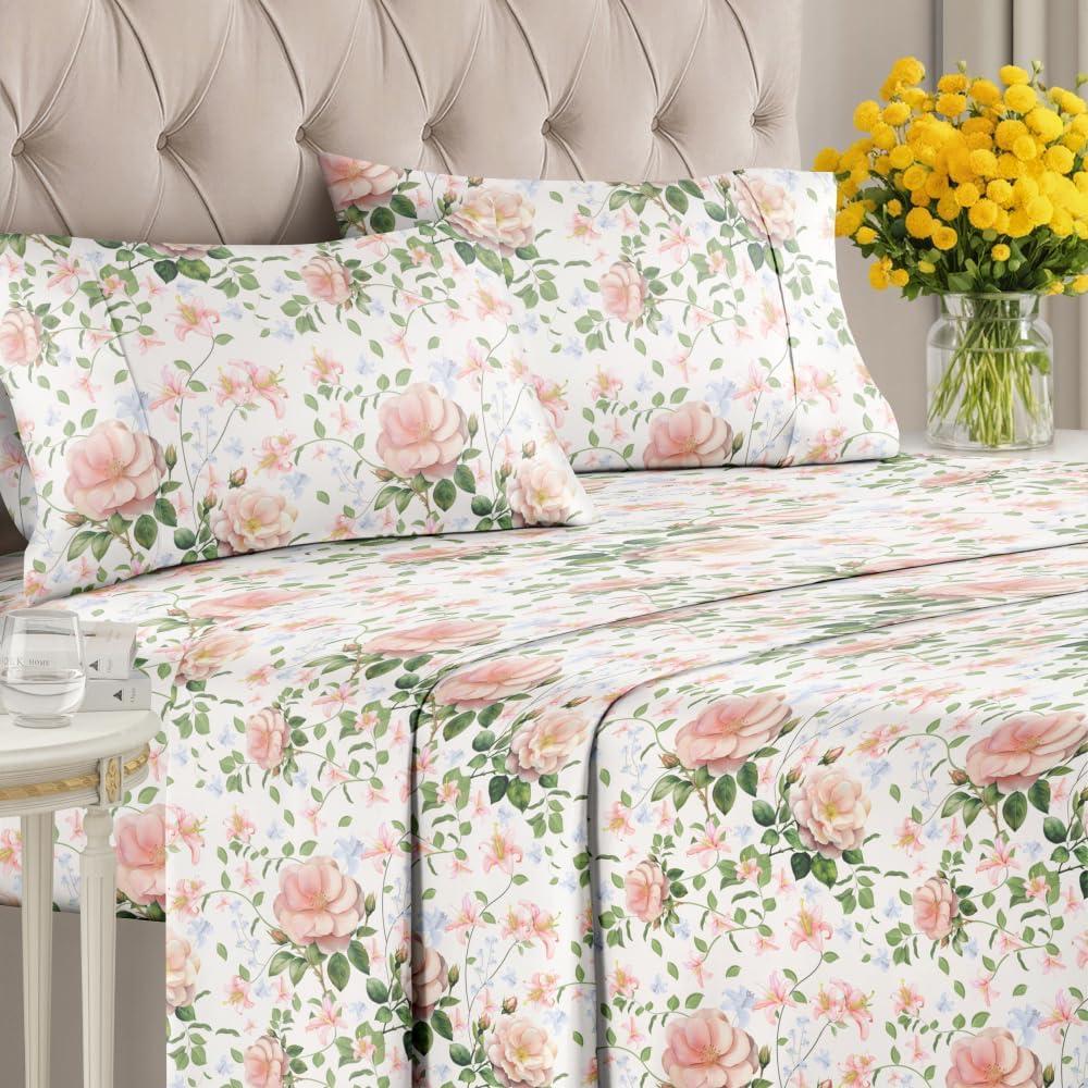 imageRainbow Striped Sheet Set  Colorful Striped Bed Set  1 Flat ampamp 1 Fitted Sheet ampamp 2 Pillowcases w Deep Pockets  Wrinkle ampamp Fade Resistant  Soft Breathable ampamp Cooling  Rainbow Bedding  Cal King Size18  Sunset Blossom