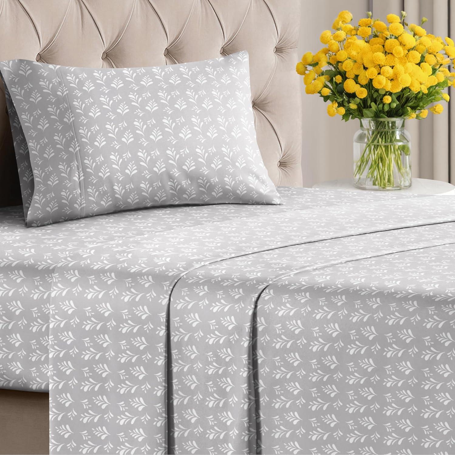 Rainbow Striped Sheet Set - Colorful Striped Bed Set - 1 Flat & 1 Fitted Sheet & 2 Pillowcases w/ Deep Pockets - Wrinkle & Fade Resistant - Soft, Breathable & Cooling - Rainbow Bedding - Cal King Size(25 - Gray Sprig)