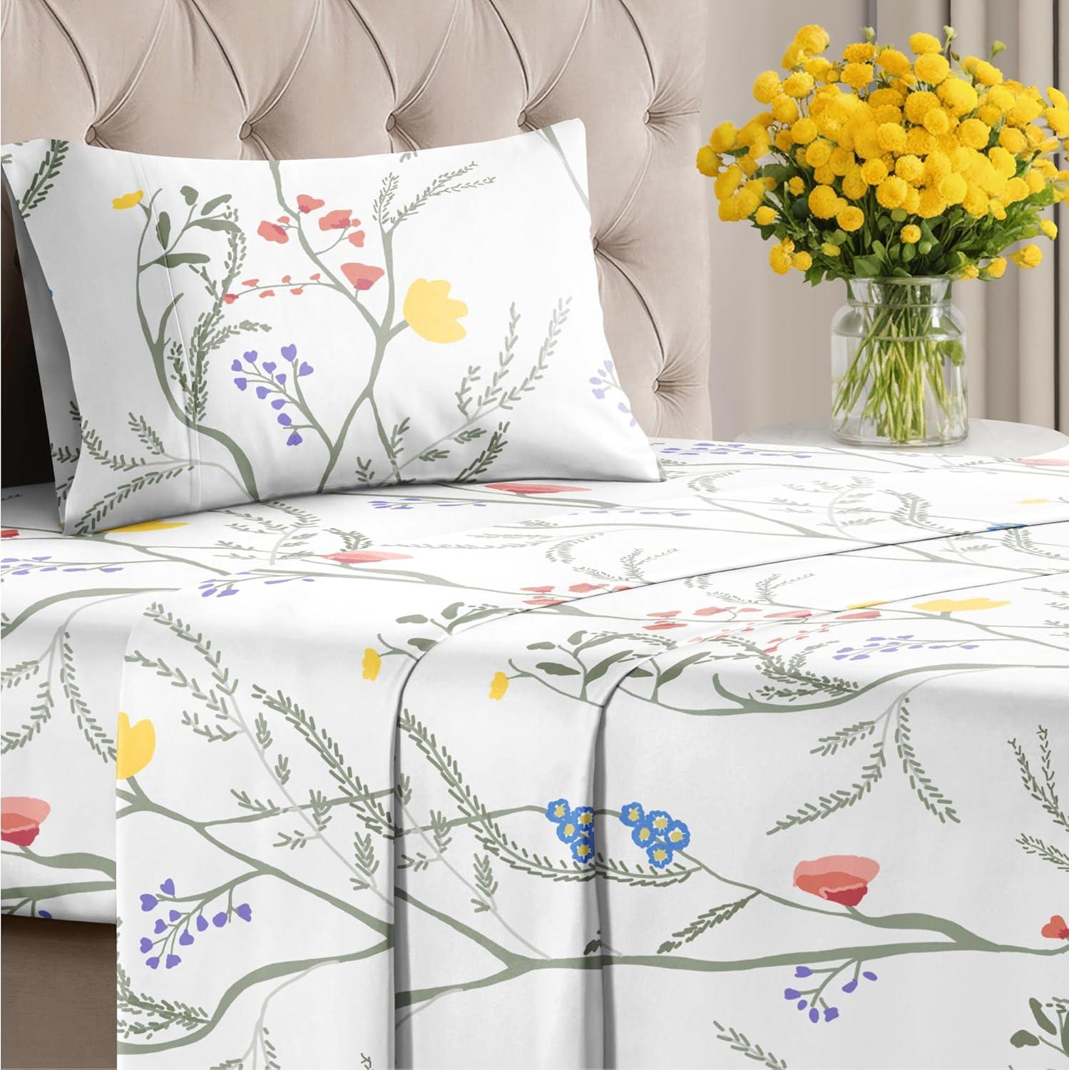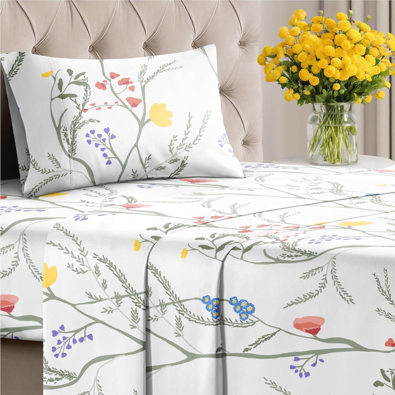 imageRainbow Striped Sheet Set  Colorful Striped Bed Set  1 Flat ampamp 1 Fitted Sheet ampamp 2 Pillowcases w Deep Pockets  Wrinkle ampamp Fade Resistant  Soft Breathable ampamp Cooling  Rainbow Bedding  Cal King Size07  Wild Flower