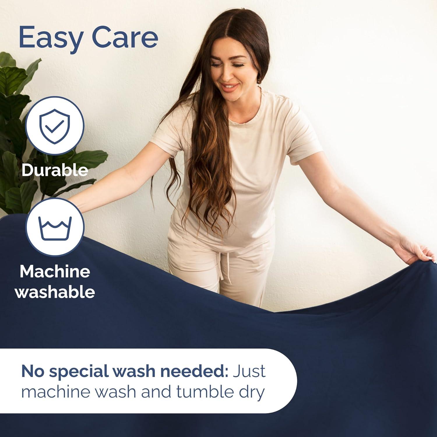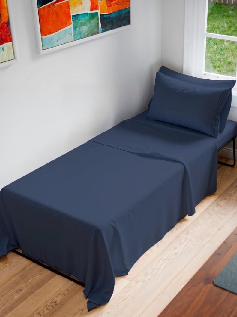 RV King Size Sheet Set 72 x 80 – 4 Piece RV King Bed Sheets – Soft, Breathable and Cooling – Designed for Bunks, Trailers & Campers – Fits 8” to 10″ Mattress – Luxury Bedding & Wrinkle Free – White(Navy Blue)