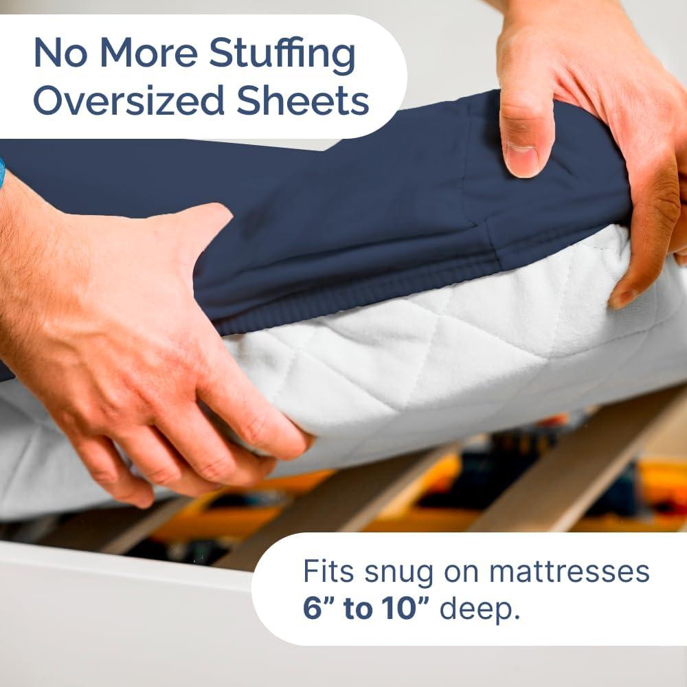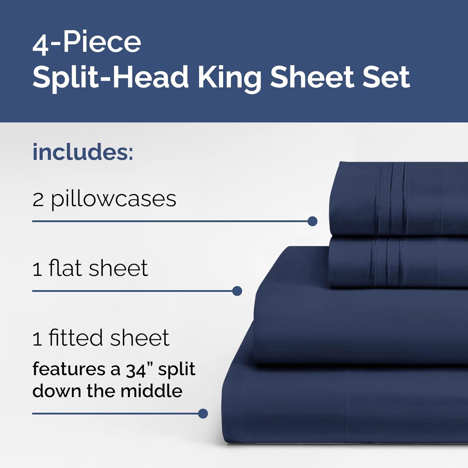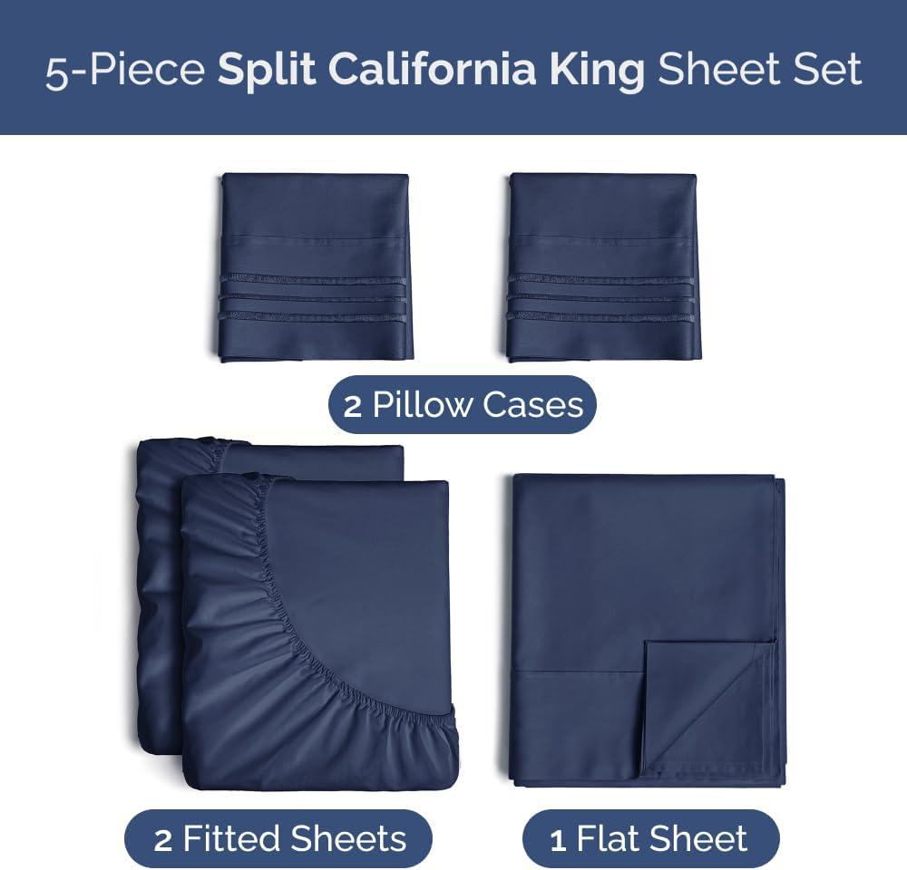 RV King Size Sheet Set 72 x 80 - 4 Piece RV King Bed Sheets - Soft, Breathable and Cooling - Designed for Bunks, Trailers & Campers - Fits 8” to 10" Mattress - Luxury Bedding & Wrinkle Free - White(Navy Blue)